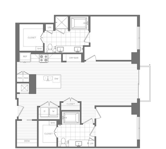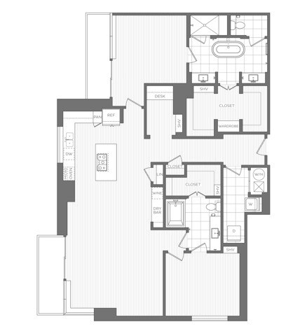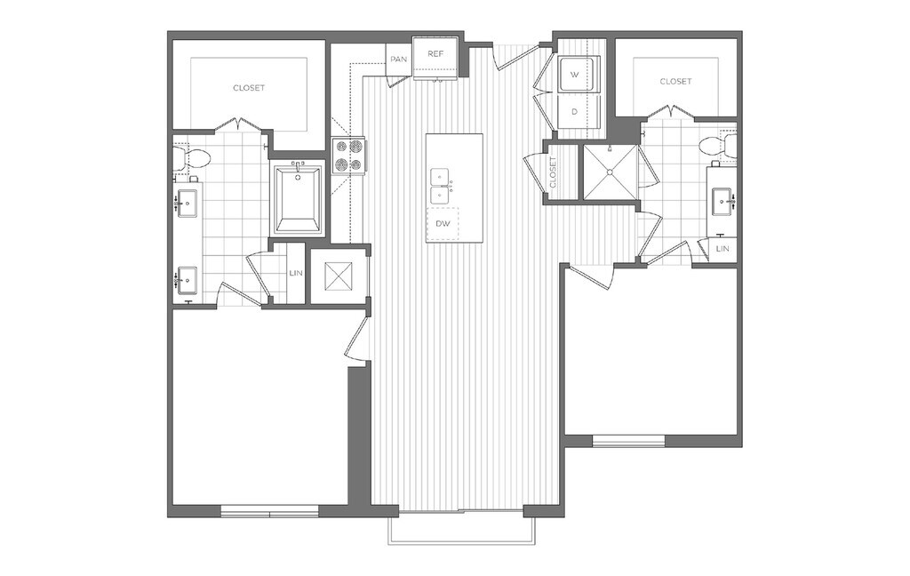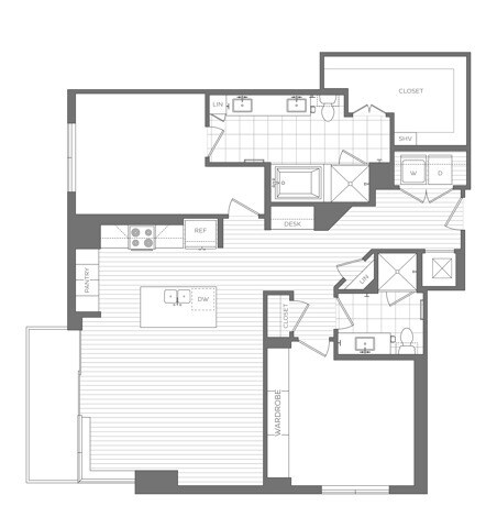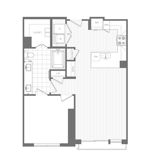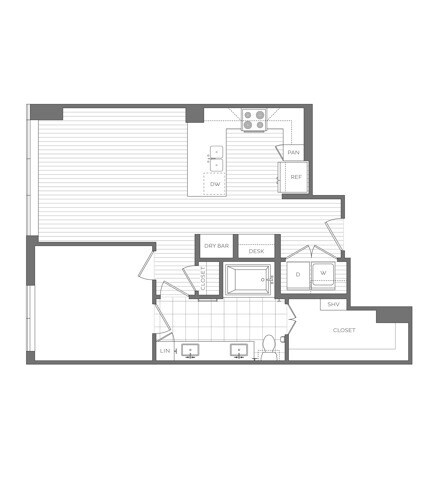 Modelo de apartamento: LDesde $2,4661 Dormitorio, 1 Baño, 925 sq ftDisponible Ahora![]()