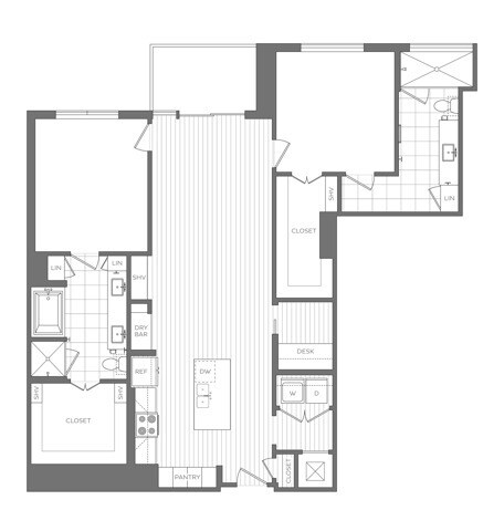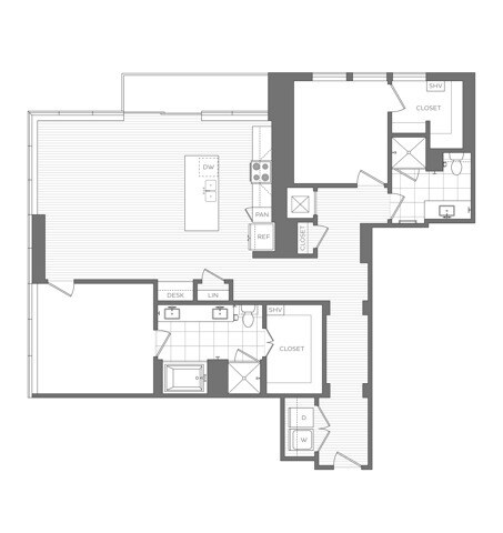 G - Plano 2 Unidad de apartamento: Main-906Modelo de apartamento: GDesde $2,4201 Dormitorio, 1 Baño, 868 sq ftDisponible AhoraPlano: L