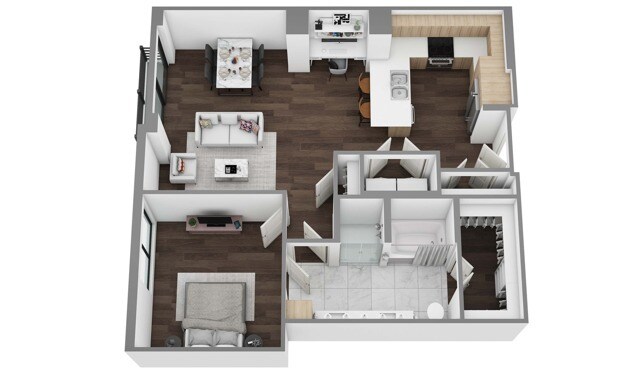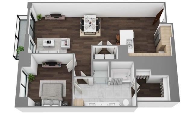 1 Dormitorio, 1 Baño, 841-1030 pies²Disponible AhoraGalería del Modelo