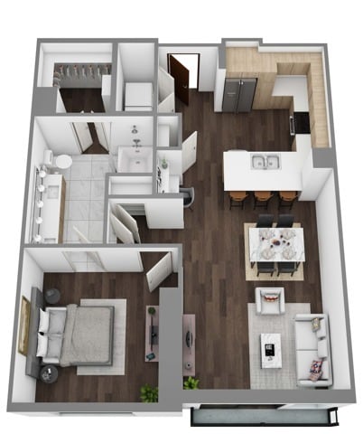 1 Dormitorio, 1 Baño, 868-897 pies²Disponible AhoraGalería del Modelo