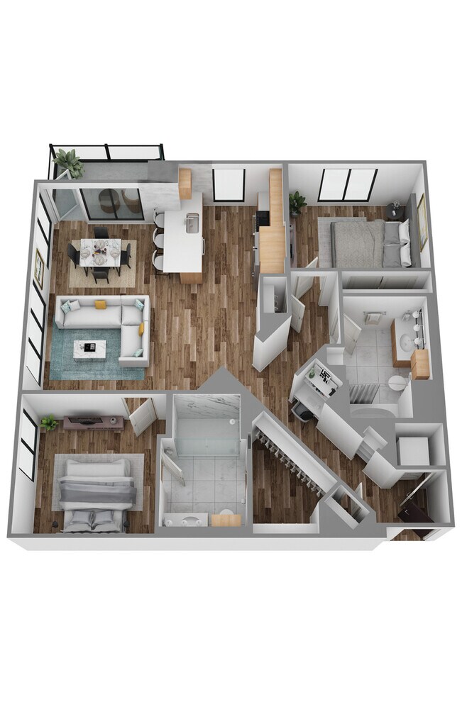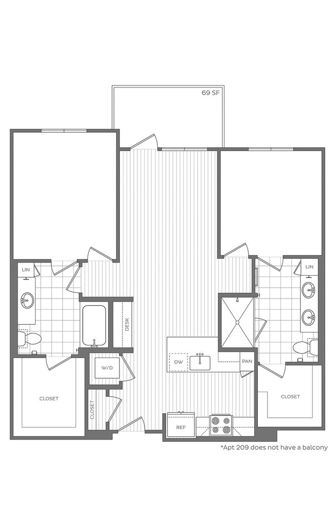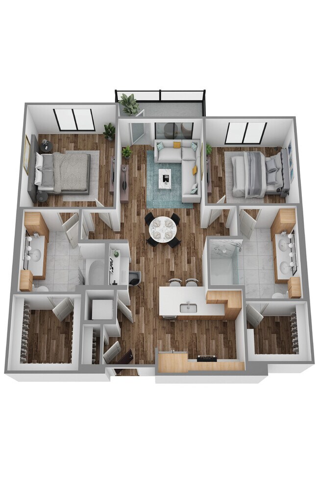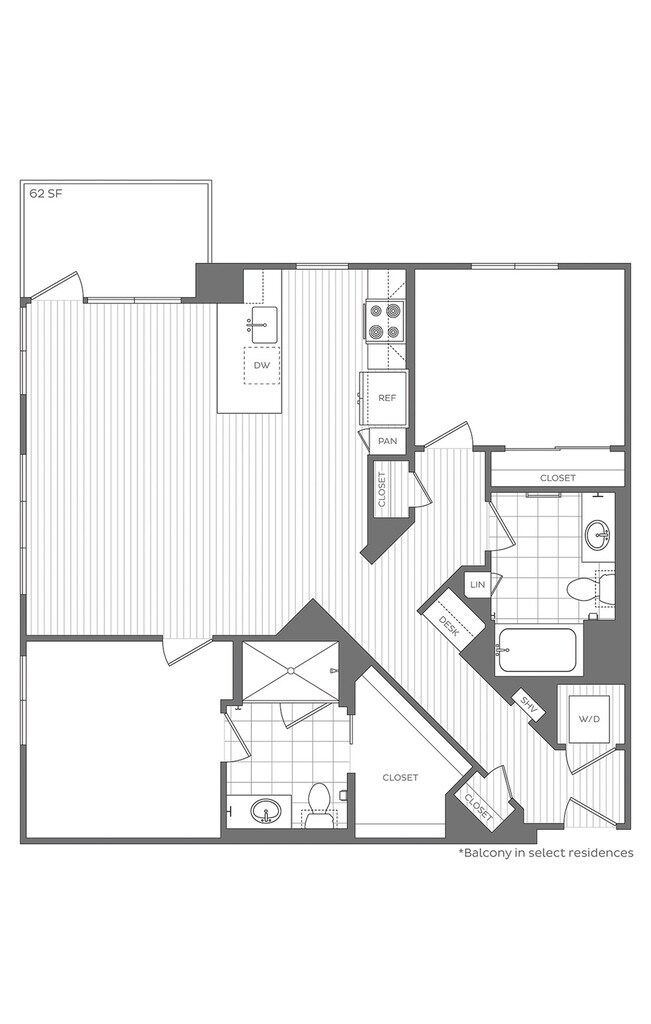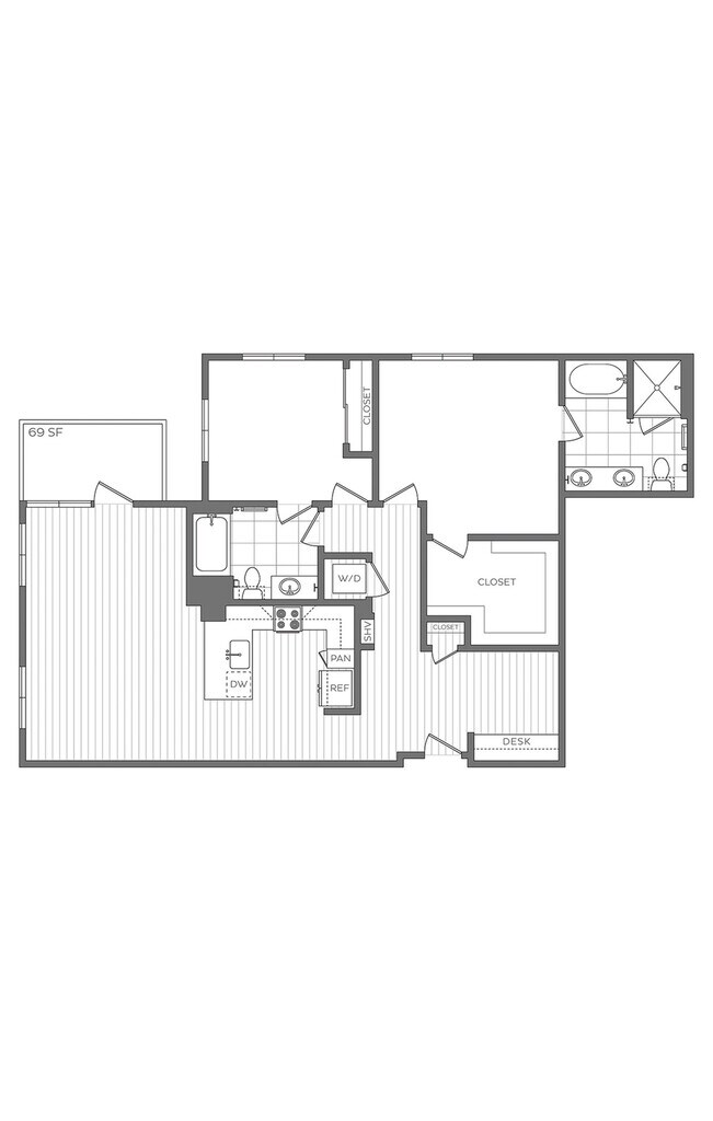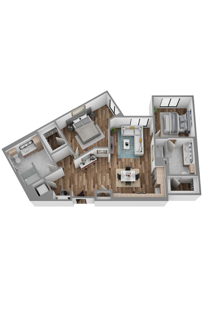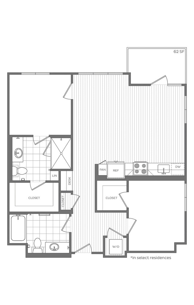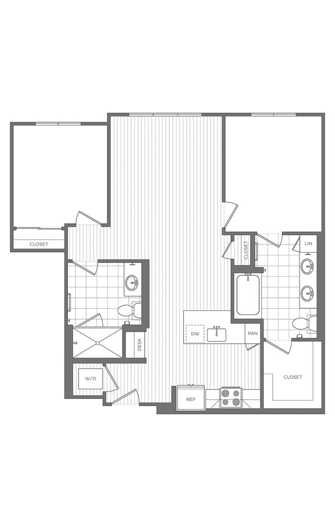 Modelo de apartamento: EDesde $2,5201 Dormitorio, 1 Baño, 688-693 sq ftDisponible Ahora![]()