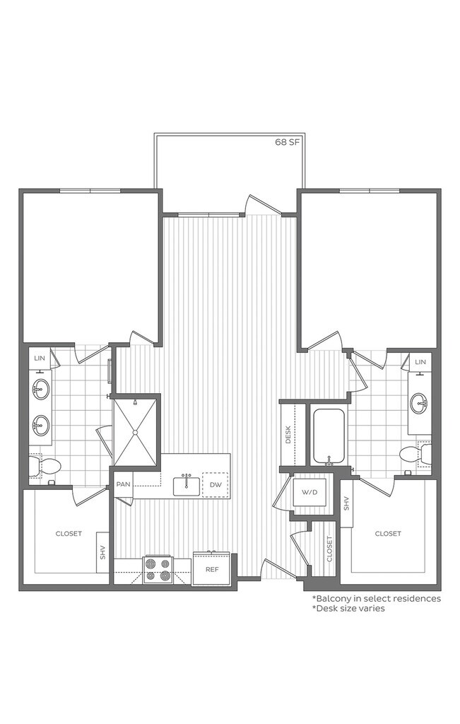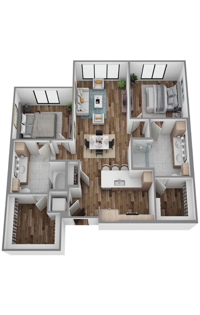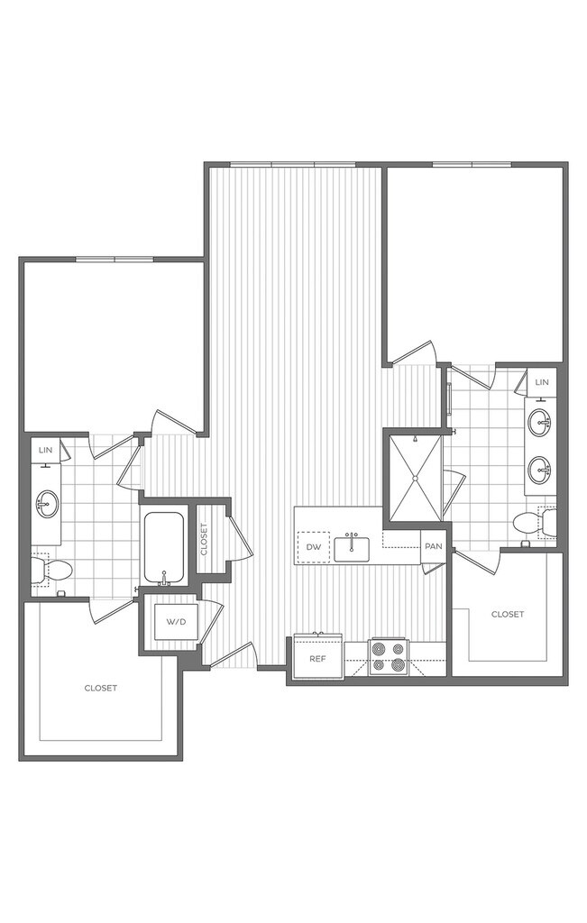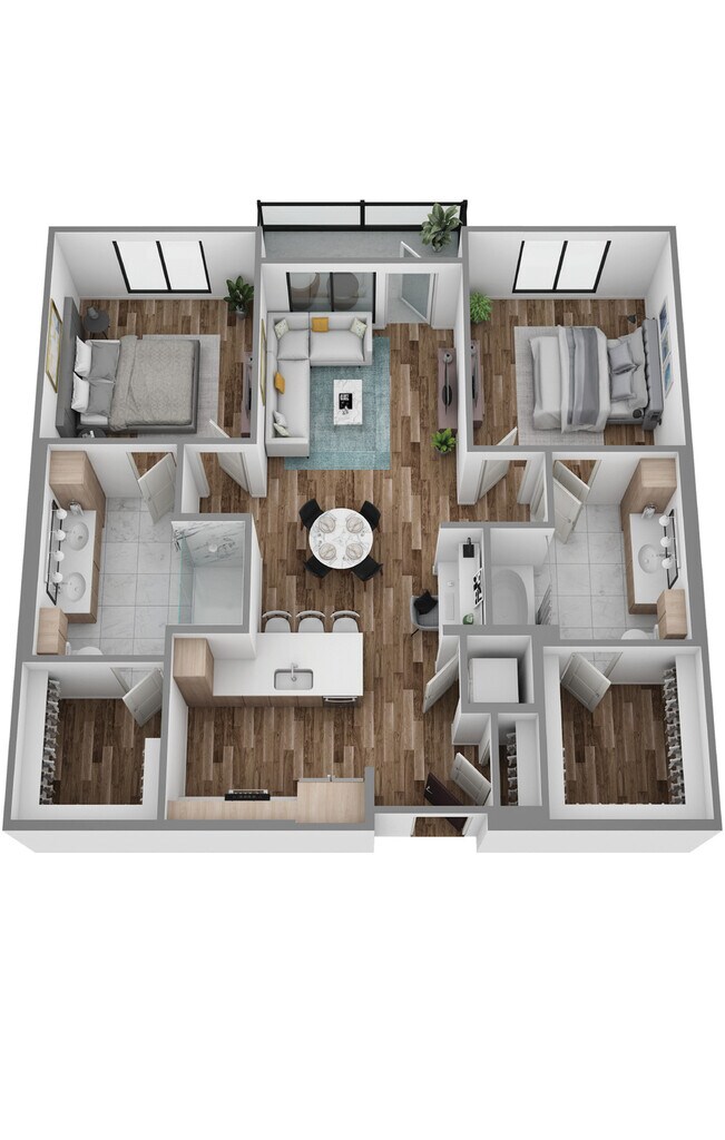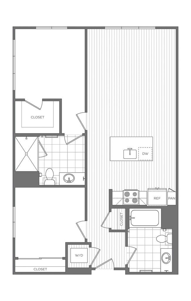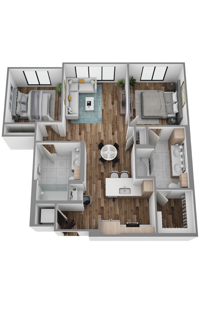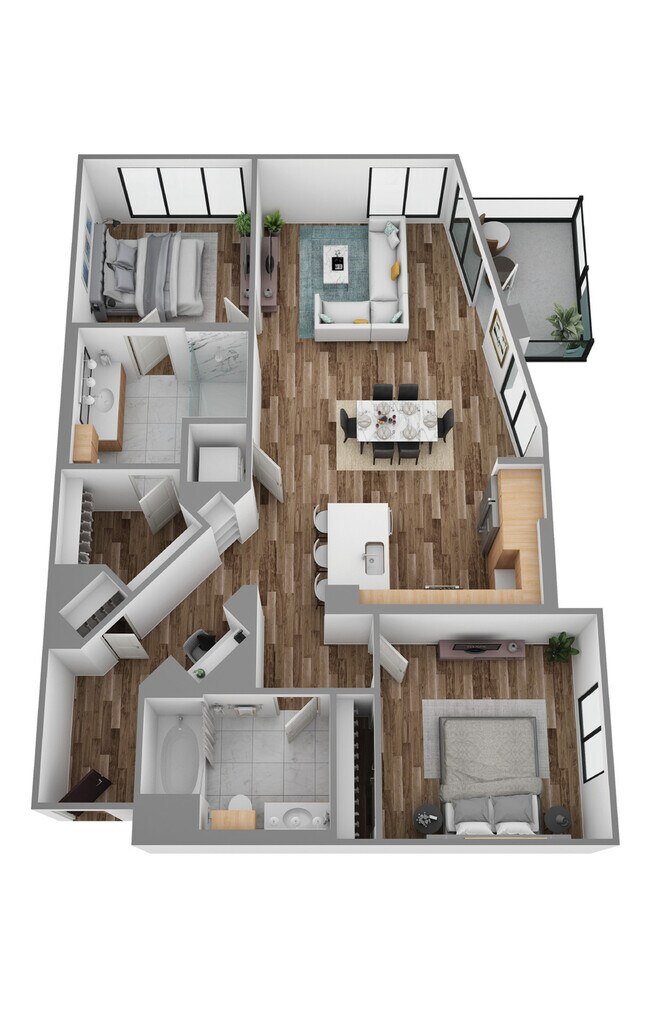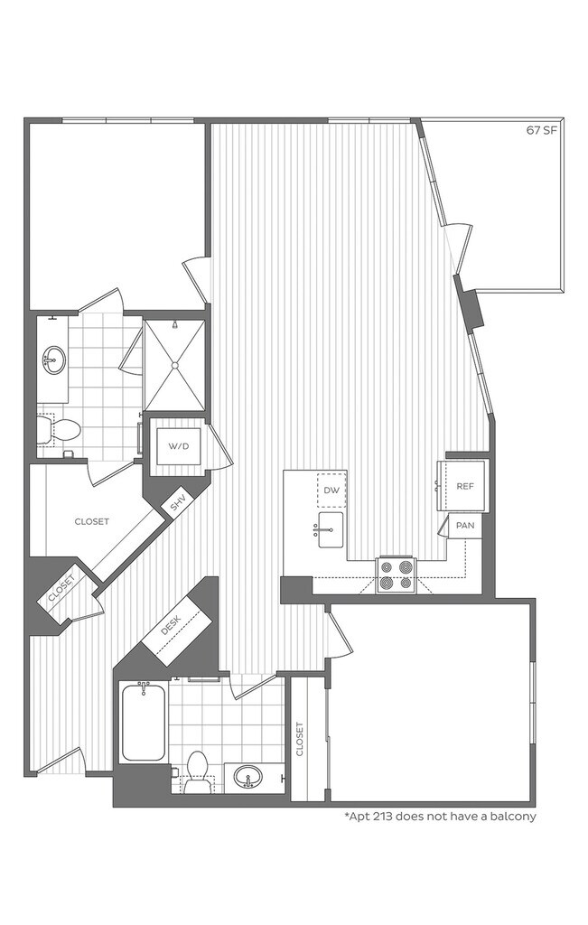 Modelo de apartamento: EDesde $2,5201 Dormitorio, 1 Baño, 688-693 sq ftDisponible Ahora![]()