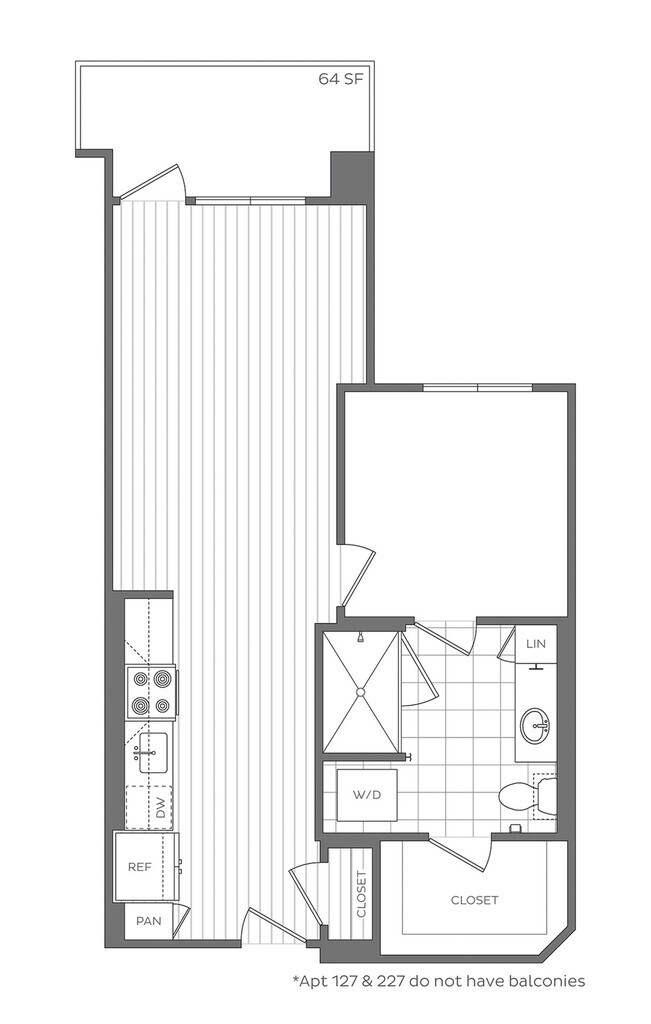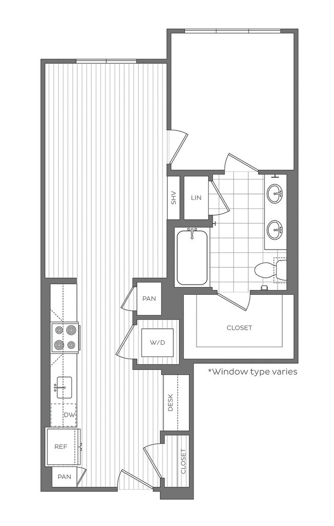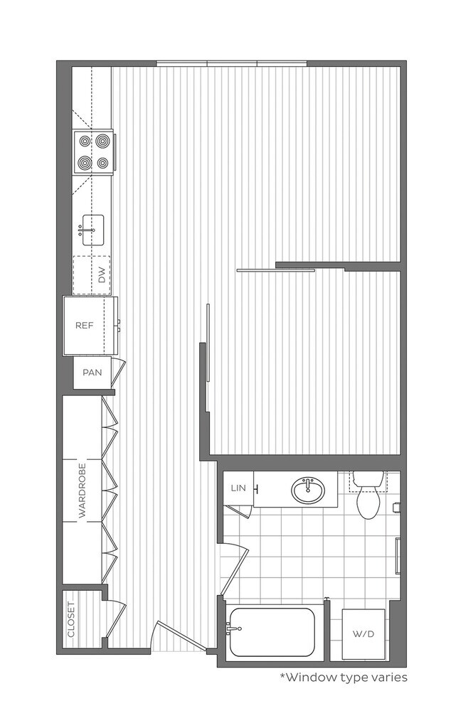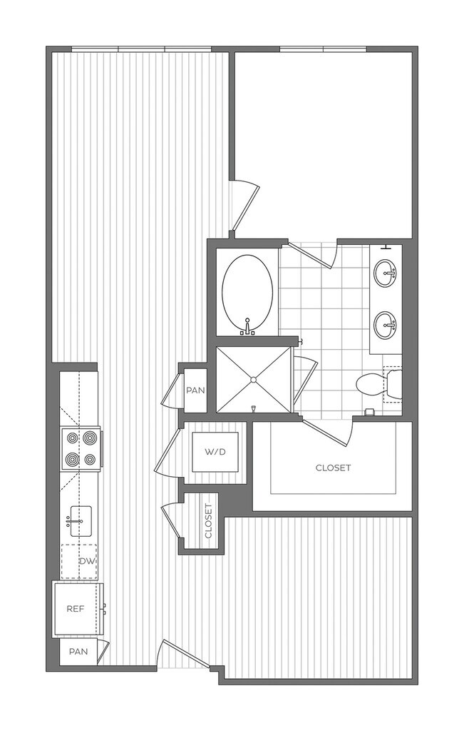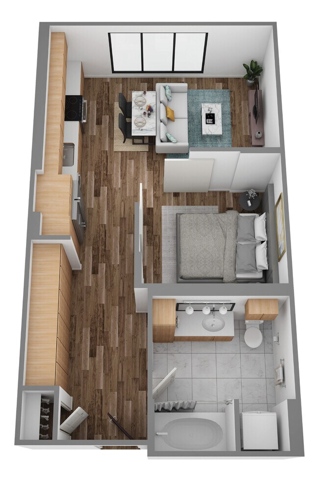 Estudio, 1 Baño, 608-627 pies²Disponible AhoraGalería del Modelo