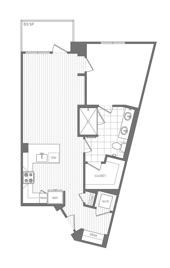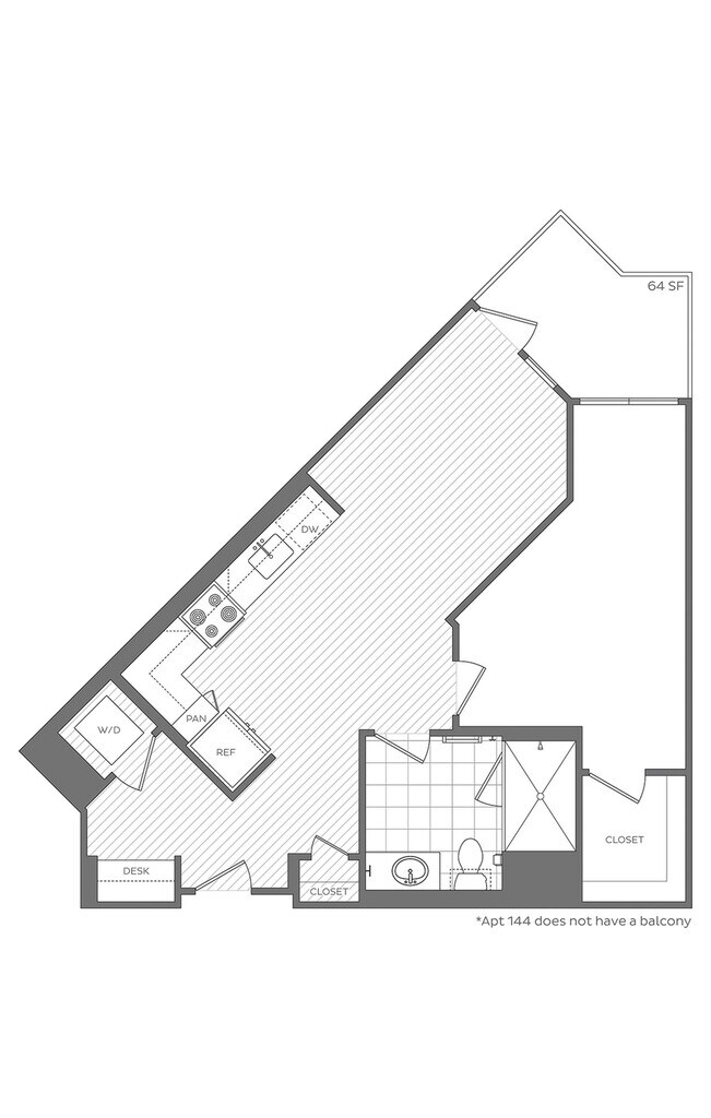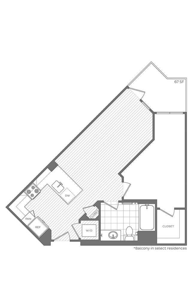 B - Plano 2 Unidad de apartamento: Main-439Modelo de apartamento: BDesde $2,449Estudio, 1 Baño, 606 sq ftDisponible AhoraPlano: A