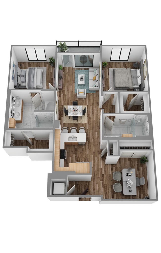 Modelo de apartamento: CDesde $2,498Estudio, 1 Baño, 649 sq ftDisponible Ahora![]()