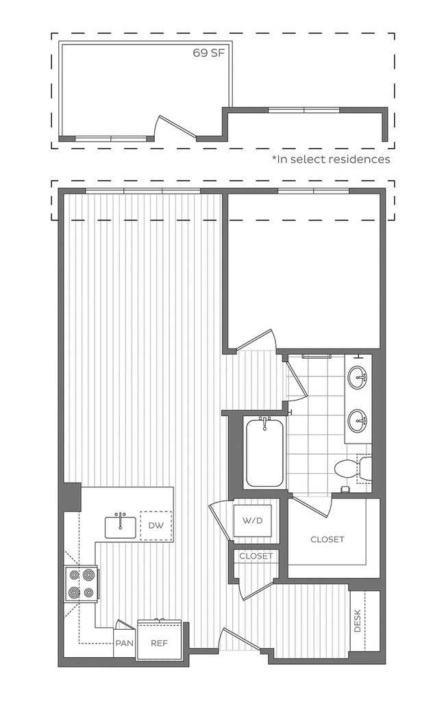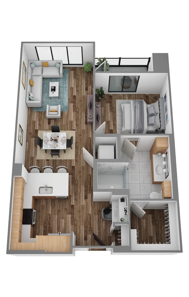 1 Dormitorio, 1 Baño, 692-722 pies²Disponible AhoraGalería del Modelo