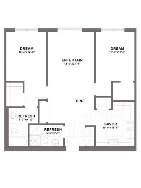 Modelo de apartamento: Dupont1 Dormitorio, 1 Baño, 820 sq ftNo Disponible![]()