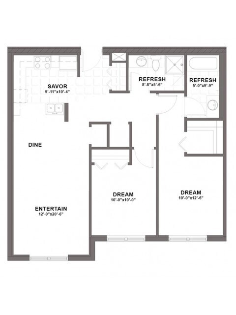 Modelo de apartamento: Hillcrest2 Dormitorios, 2 Baños, 988 sq ftNo Disponible![]()