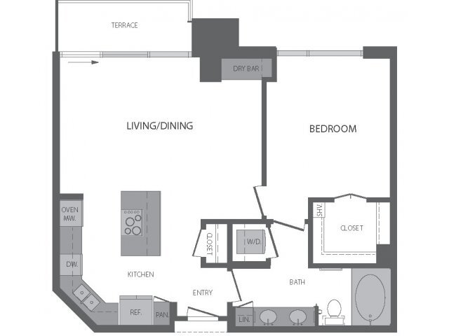 Unidad: 1014 - Imagen Unidad de apartamento: 0914Modelo de apartamento: D1 Dormitorio, 1 Baño, 896 sq ftDisponible June 3, 2026![]()