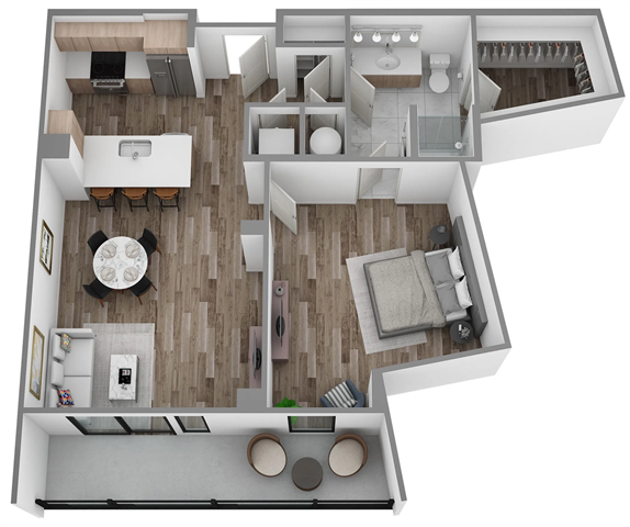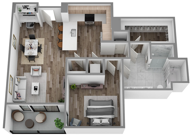 1 Bed, 1 Bath, 727 sq ftPlus FeesAvailable NowModel Gallery