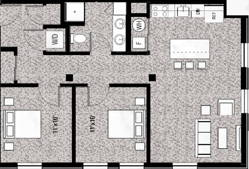 1 Bedroom - L - Downtown View - Plano 11 Unidad de apartamento: A103Modelo de apartamento: 1 Bedroom - L - Downtown View$1,2971 Dormitorio, 1 Baño, 790 sq ftDisponible March 1, 20262 Dormitorios