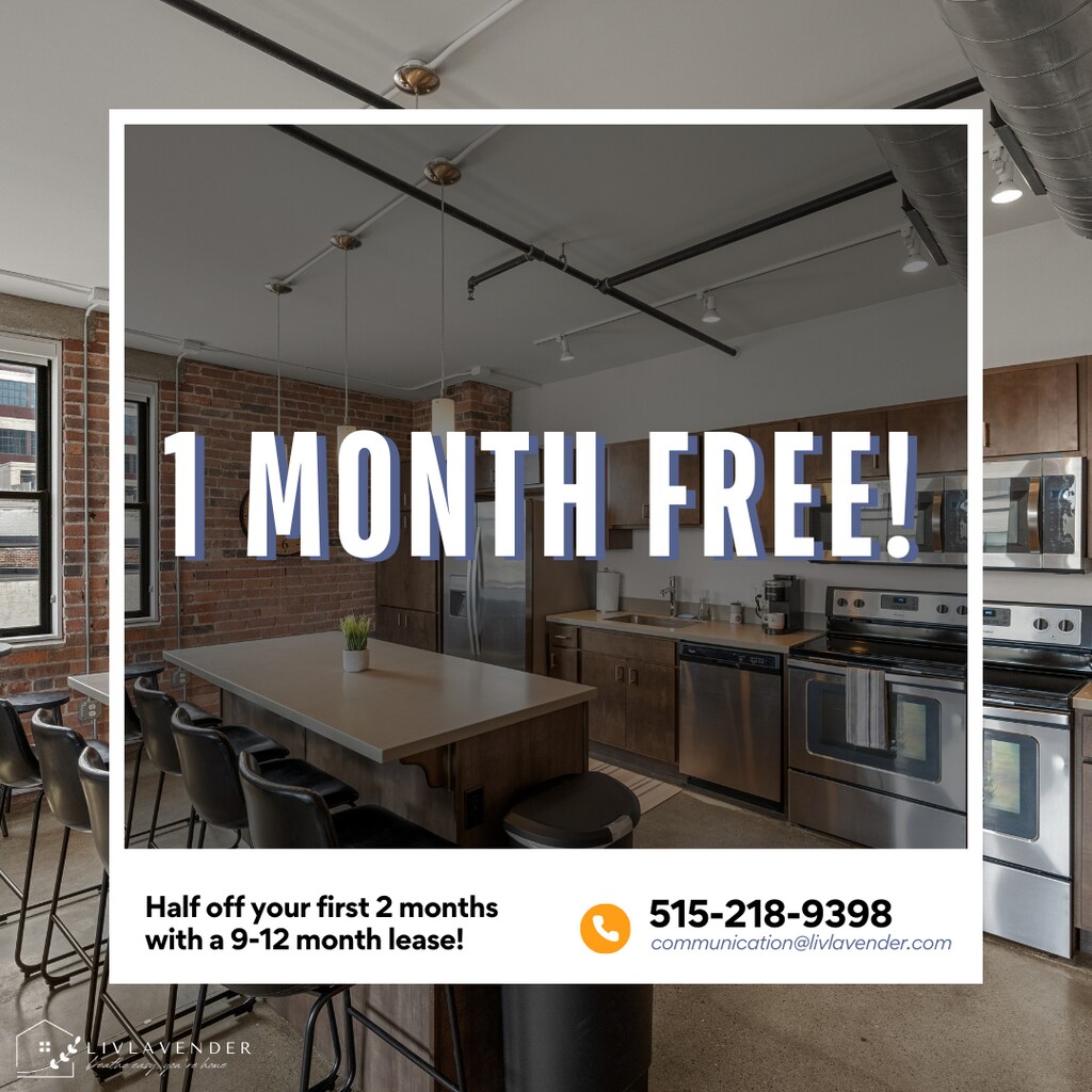 La promoción que hay actualmente para la renta en Harbach Lofts es: One Month Free~~One month free when you sign a 12 month lease! Must sign by 4/15/2026!