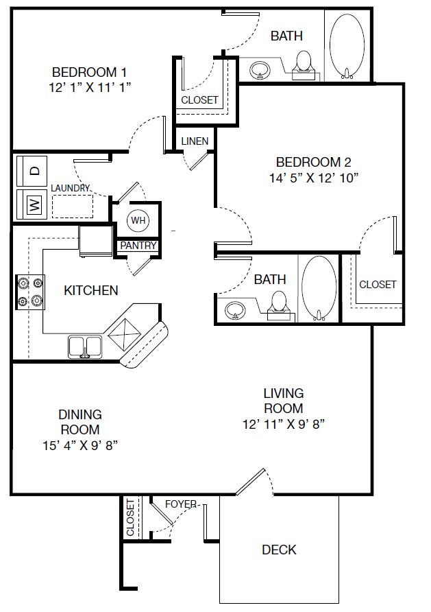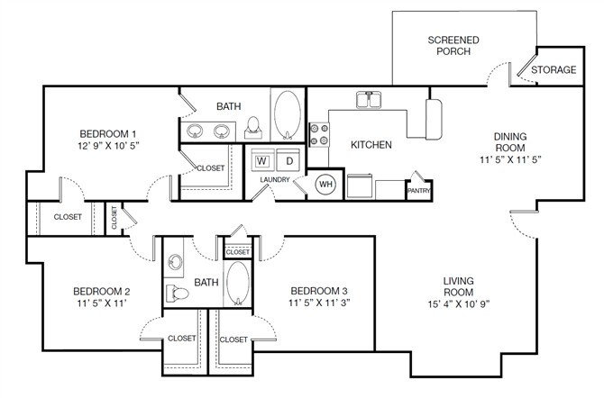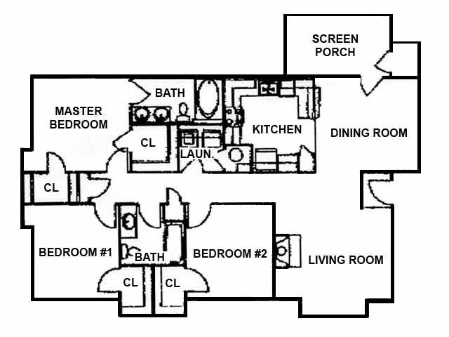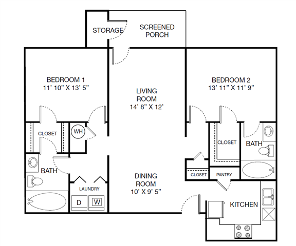 Modelo de apartamento: A1 - TraditionalDesde $1,2051 Dormitorio, 1 Baño, 806 sq ftDisponible Ahora![]()