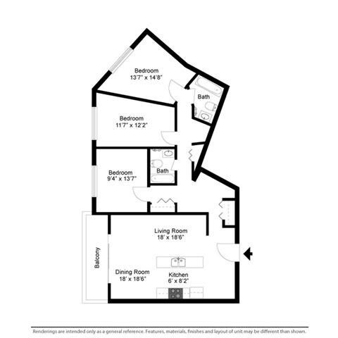 1 Bed 1 Bath Junior - Plano 3 ![]()