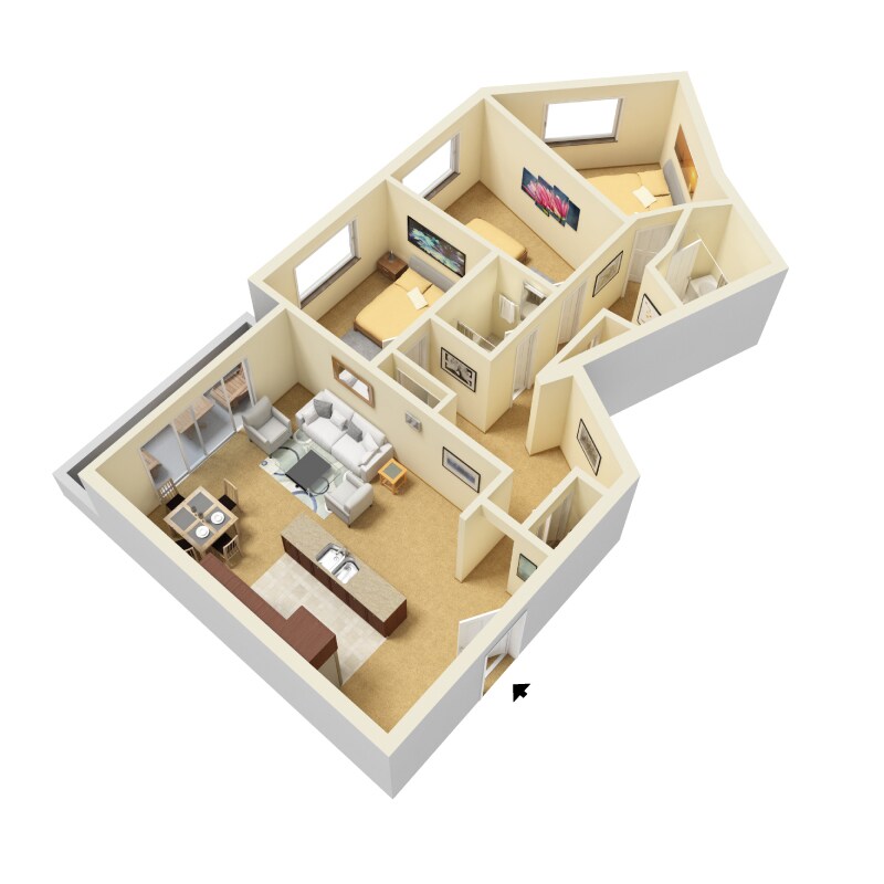 1 Dormitorio, 1 Baño, 840 pies²Disponible Nov 20El más grandeEsta opción tiene las unidades más grandes para este modeloGalería del Modelo
