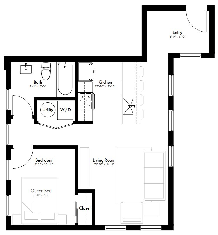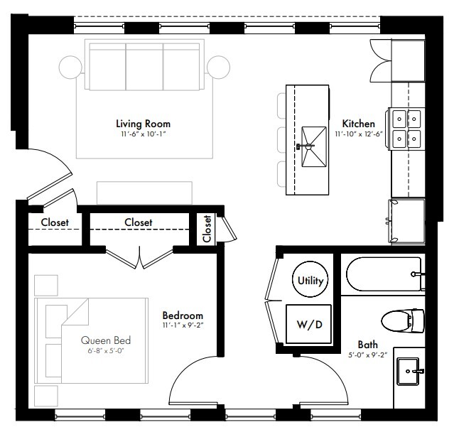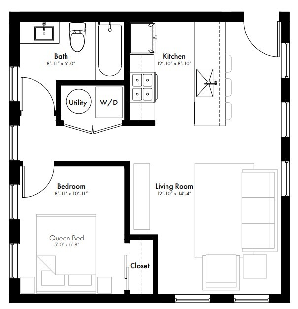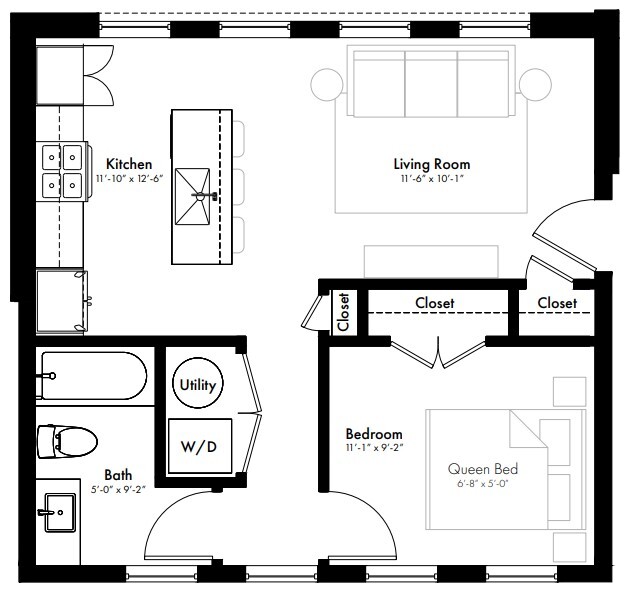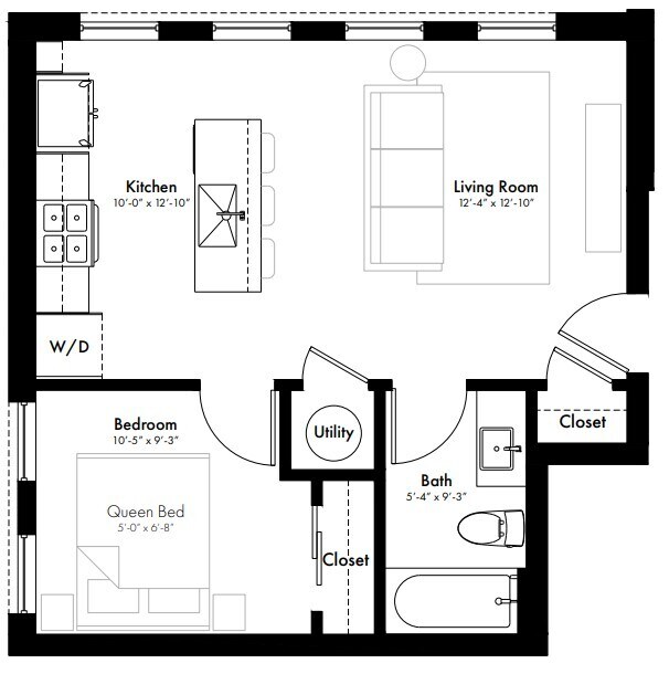 1 Dormitorio, 1 Baño, 575-668 pies²Galería del Modelo