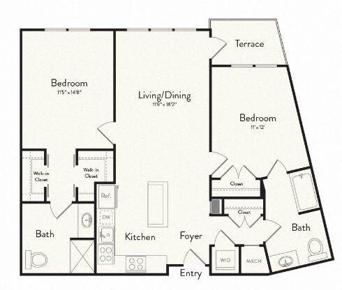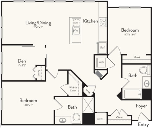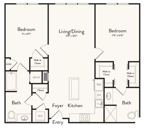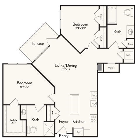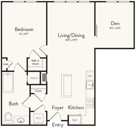 1 Dormitorio, 1 Baño, 847-863 pies²Disponible AhoraEl más grandeEsta opción tiene las unidades más grandes para este modeloGalería del Modelo