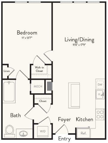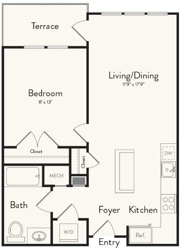 1 Dormitorio, 1 Baño, 728-746 pies²Disponible AhoraGalería del Modelo