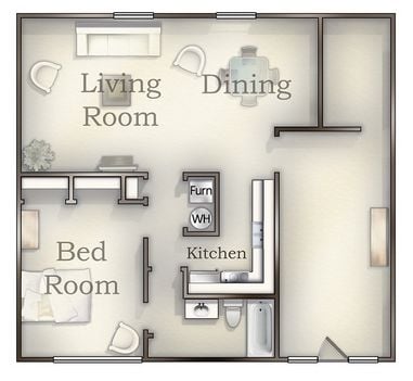 1 Dormitorio, 1 Baño, 850 pies²Galería del Modelo