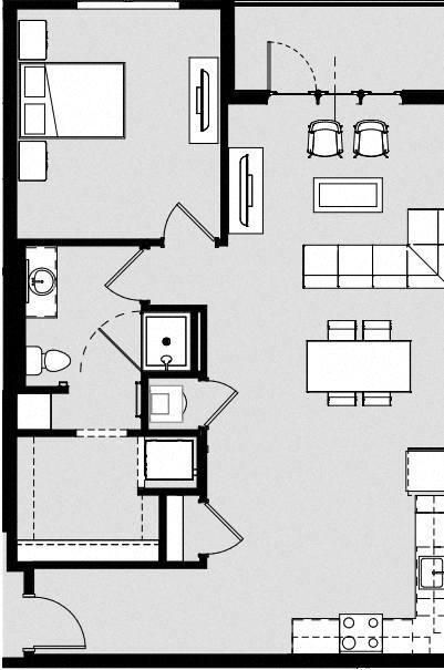 1 Dormitorio, 1 Baño, 581 pies²Disponible AhoraGalería del Modelo