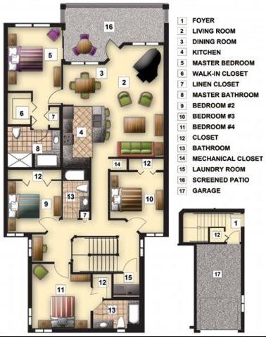 Modelo de apartamento: Four Bedroom Three Bath4 Dormitorios, 3 Baños, 1846 sq ftDisponible Ahora![]()