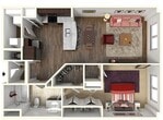 Modelo de apartamento: A4Desde $1,5991 Dormitorio, 1 Baño, 825 sq ftDisponible August 8, 2026PlanosFotos![]()