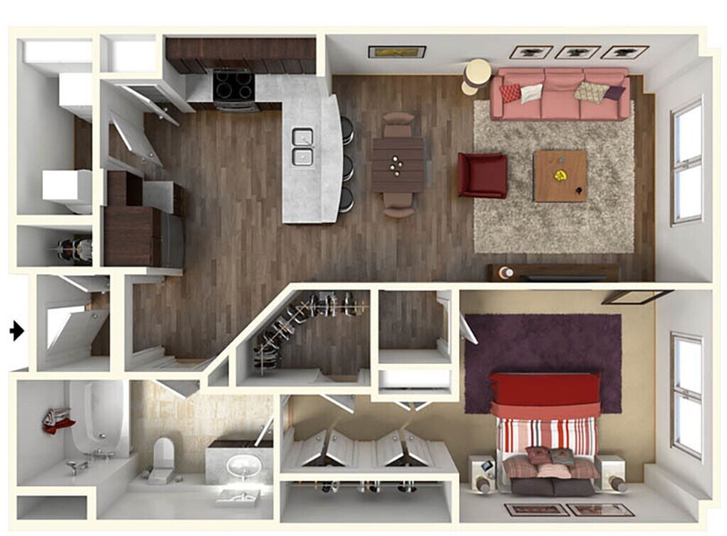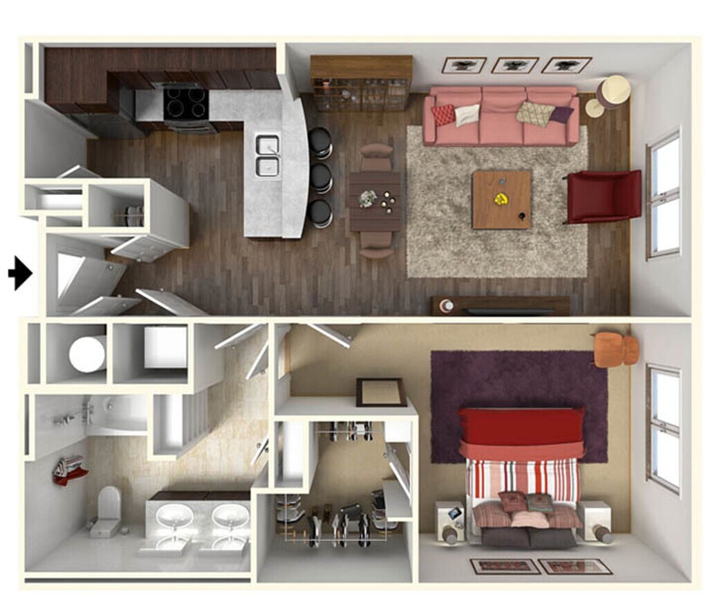 1 Dormitorio, 1 Baño, 825 pies²Más CargosDisponible Aug 8Galería del Modelo