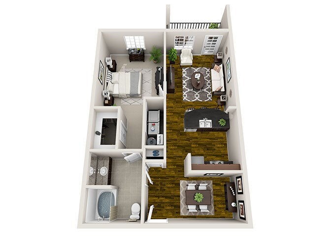 Modelo de apartamento: AzureDesde $1,3061 Dormitorio, 1 Baño, 802 sq ftDisponible Ahora![]()