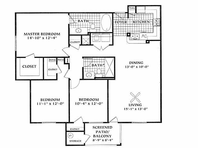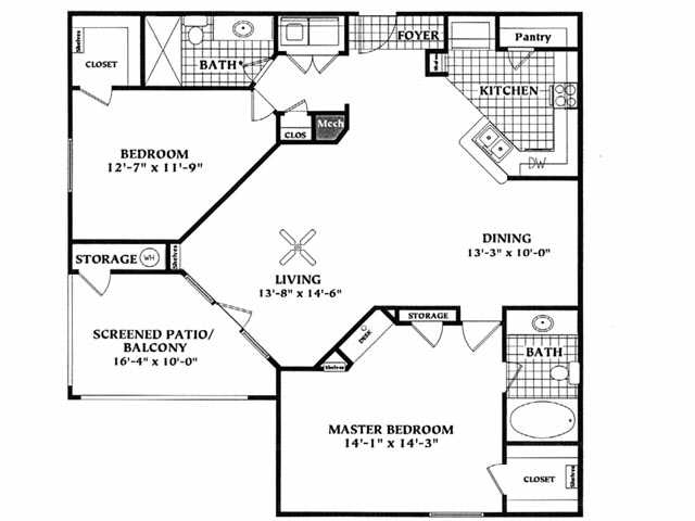 Modelo de apartamento: Bonair2 Dormitorios, 1 Baño, 980 sq ftDisponible AhoraPlanosFotos![]()