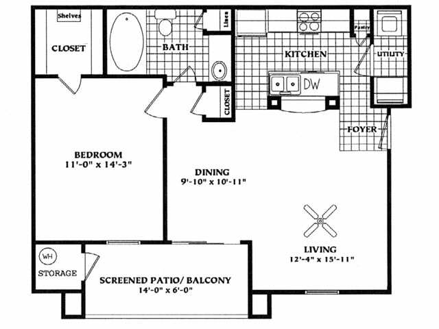 1 Dormitorio, 1 Baño, 869 pies²Disponible AhoraGalería del Modelo