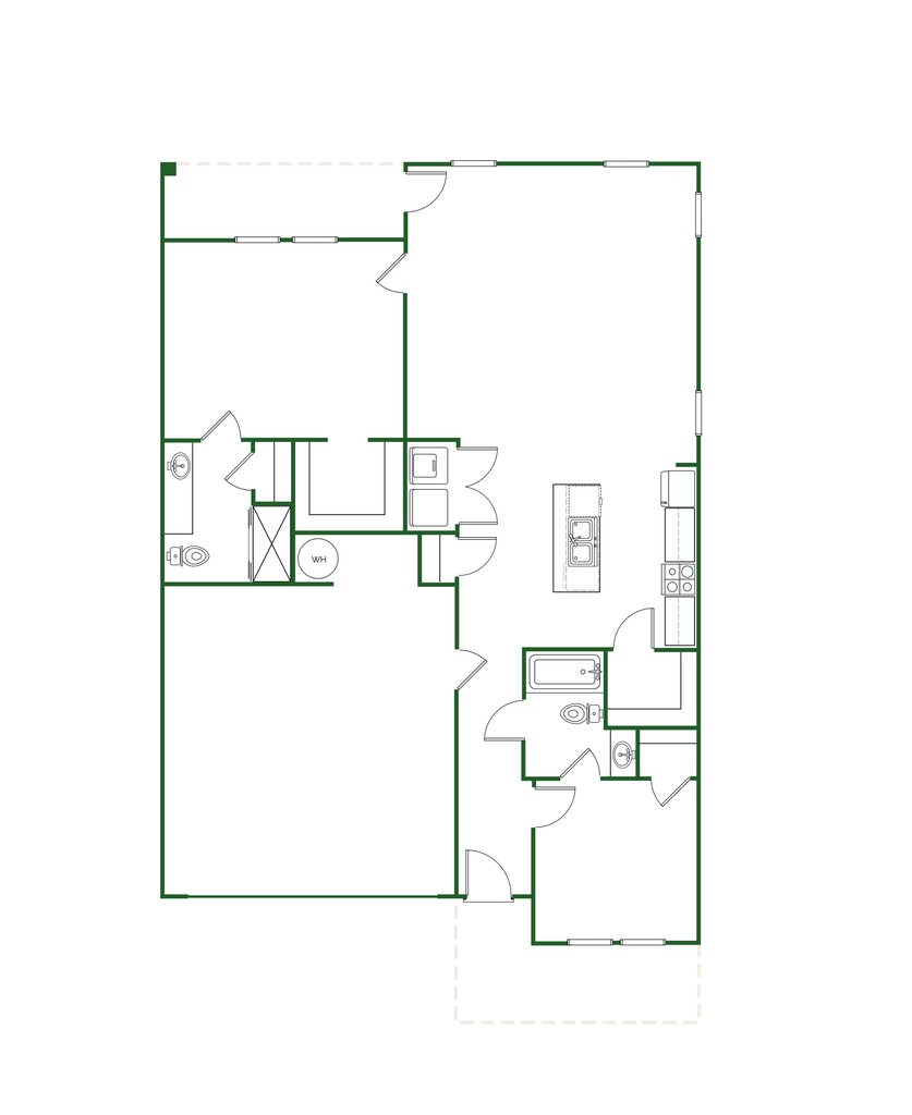 Deerwood - Plano 1 Unidad de apartamento: 137-TModelo de apartamento: Deerwood$2,4292 Dormitorios, 2 Baños, 1164 sq ftDisponible AhoraEvergreen