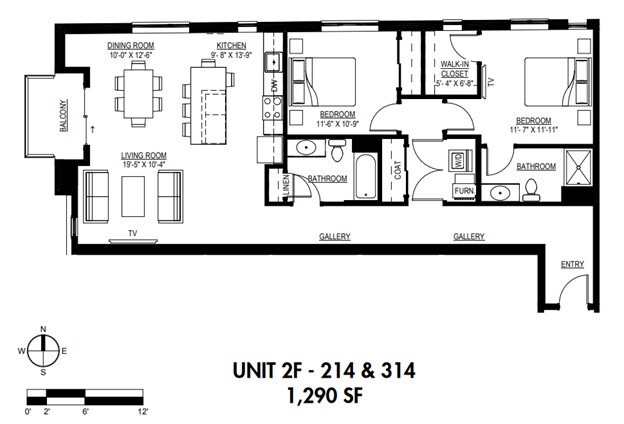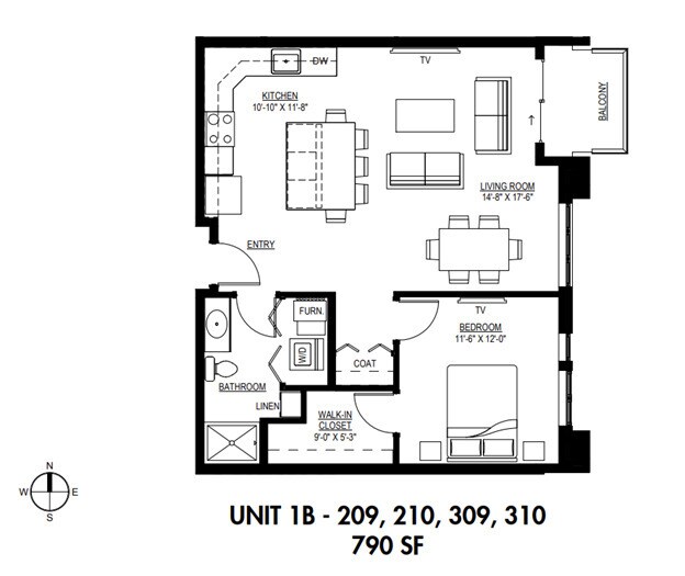 Unidad: 208 - Plano 1BR/1BA 1B 209/210/309/310