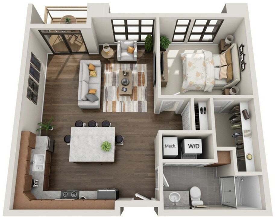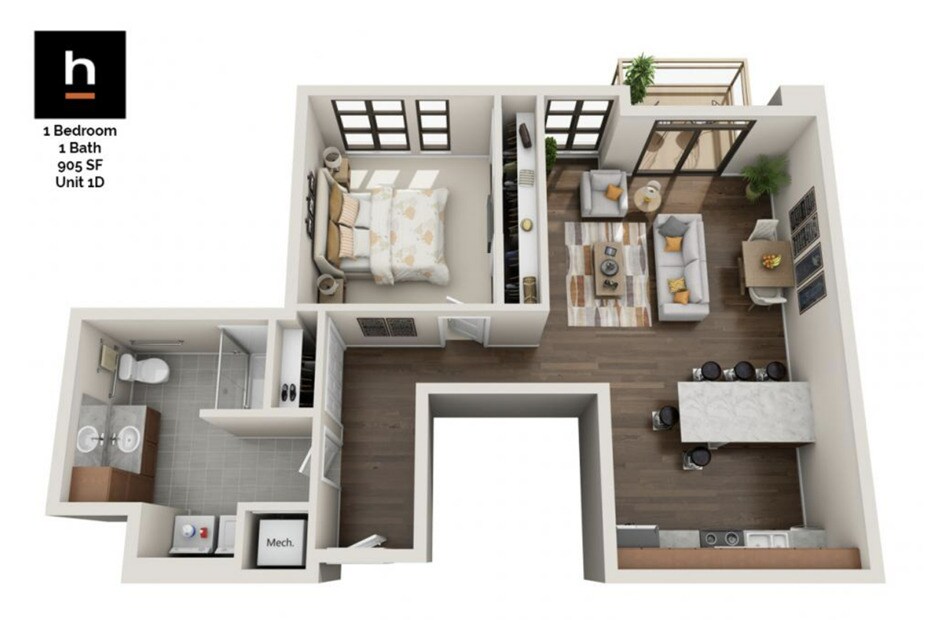 1 Dormitorio, 1 Baño, 905 pies²Disponible May 1Galería del Modelo