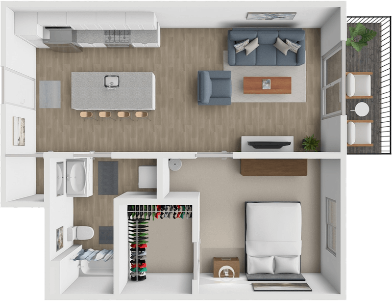 1 Dormitorio, 1 Baño, 712 pies²Disponible AhoraGalería del Modelo