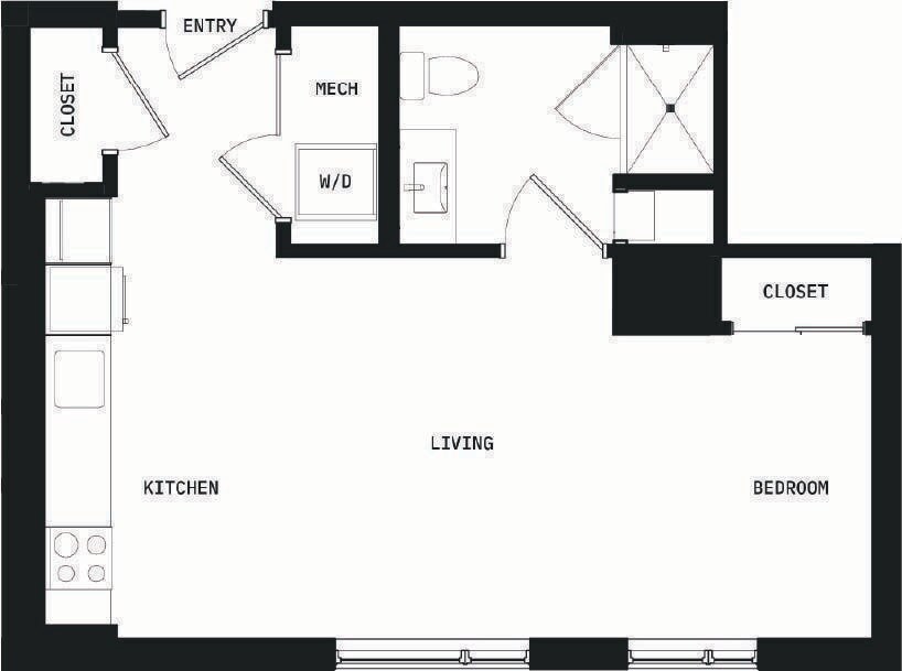 Estudio, 1 Baño, 500 pies²Galería del Modelo