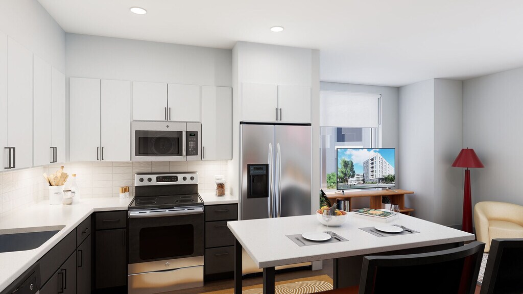 Now Leasing! Brand new studio, one, and two-bedroom apartments in Allston, MA. Harper merges the artful, modern spirit of its Allston neighborhood with the historic authenticity of Boston. Two six-story buildings feature a collection of modern apartments within moments of the city’s best universities, dining, culture, nightlife, sports and entertainment. Traditional touches and contemporary design flourish in light and airy spaces enriched with colorful accents. Featuring amenities such as sky Lounge, 11,000 sq ft. of landscaped green space, a fitness studio with flex space, pet run & pet wash, co-working space with private conference rooms, package lockers, ground floor retail and a fully automated parking system offering valet-style parking. The interiors include stainless steel GE appliances, under-cabinet lighting, quartz countertops, custom tiled backsplashes, wood-inspired flooring, and tile flooring in bathrooms.