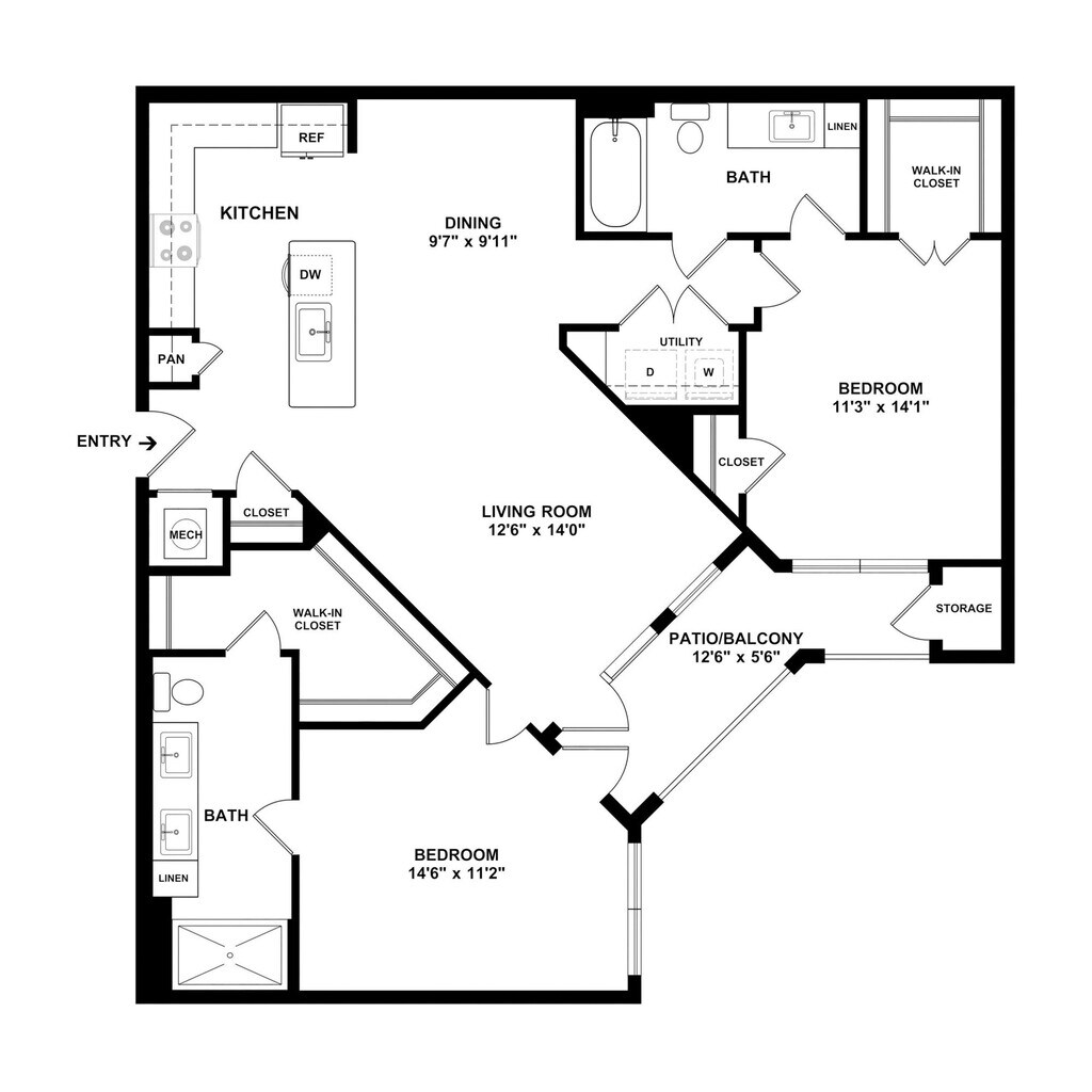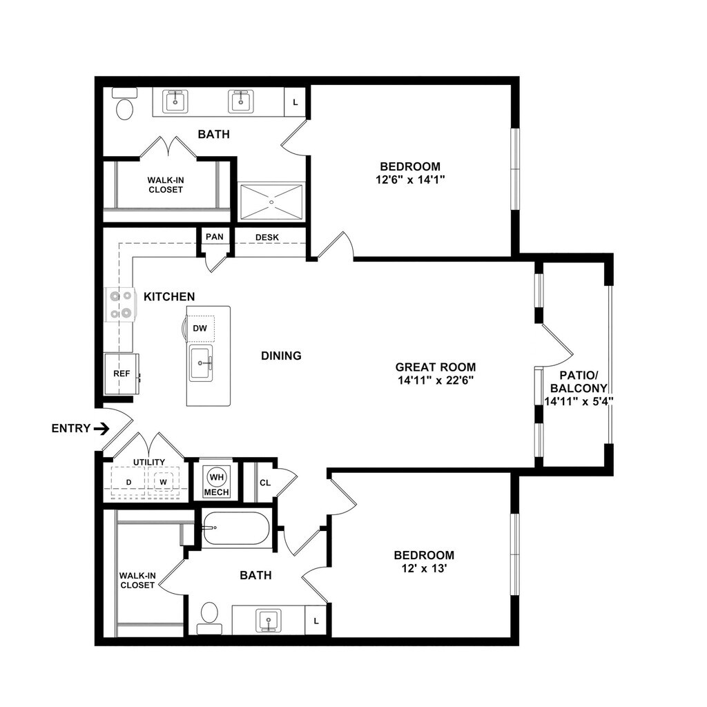 Modelo de apartamento: A2Desde $1,1391 Dormitorio, 1 Baño, 824 sq ftDisponible Ahora![]()