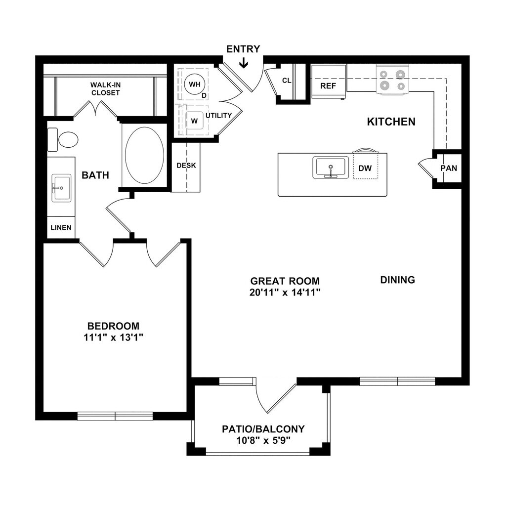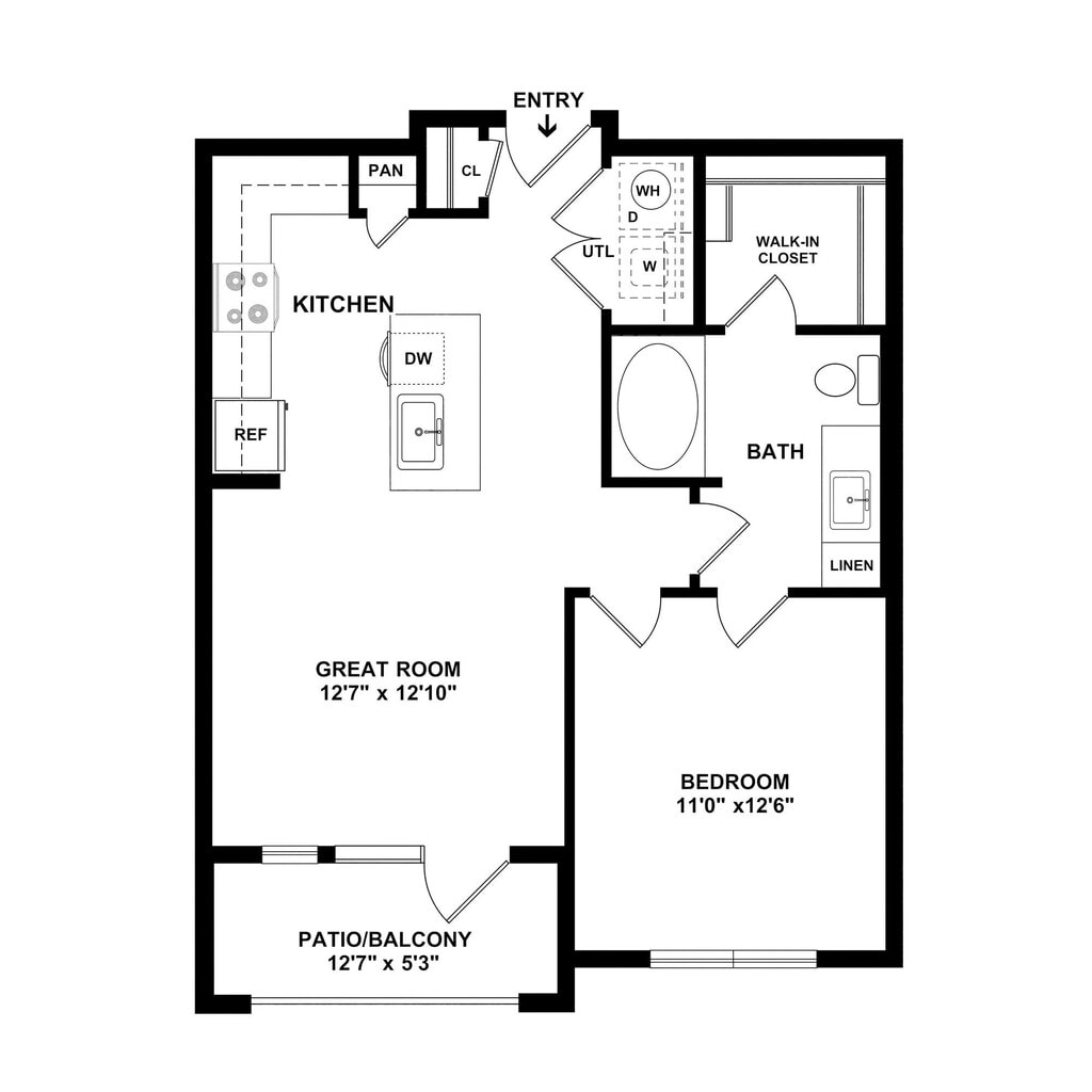 Modelo de apartamento: A1Desde $1,0901 Dormitorio, 1 Baño, 758 sq ftDisponible Ahora![]()