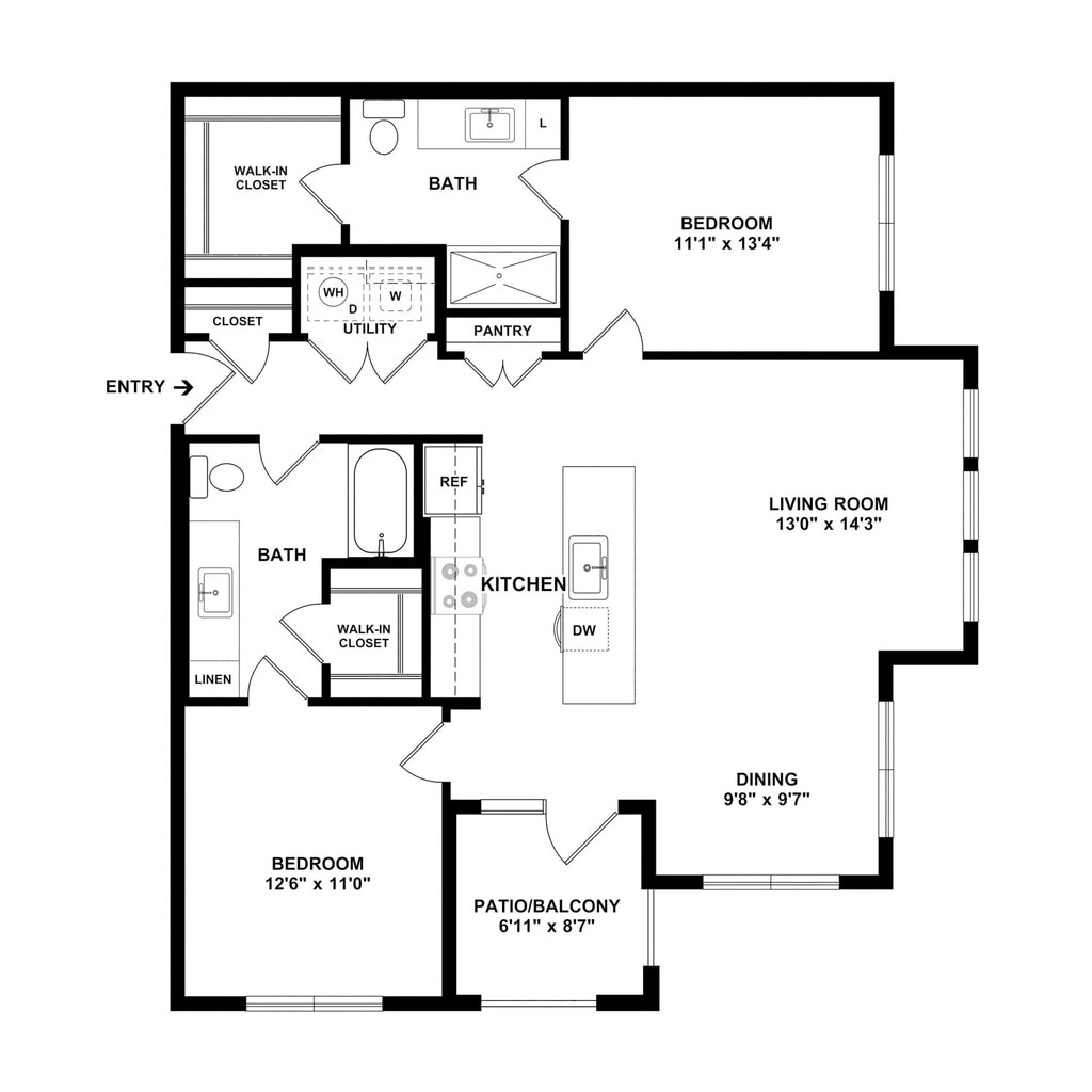 Modelo de apartamento: A3Llame para Precios1 Dormitorio, 1 Baño, 845 sq ftNo Disponible![]()