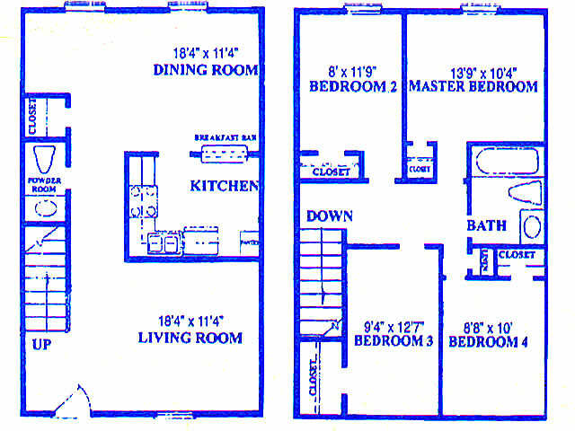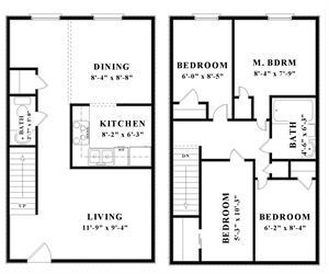 Modelo de apartamento: Two Bedroom TownhomeDesde $1,3102 Dormitorios, 1 Baño, 858 sq ftDisponible Ahora![]()