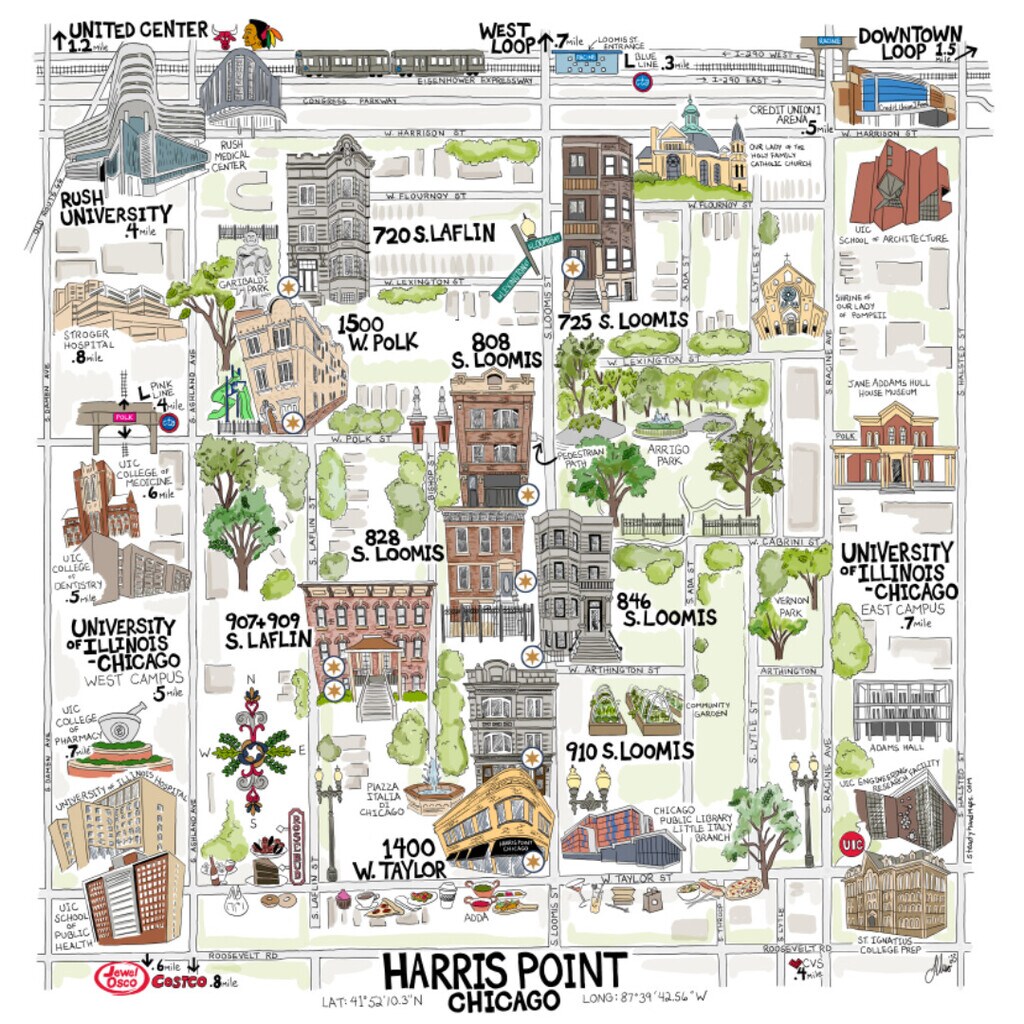 Harris Point Chicago se encuentra en el Barrio Little Italy y el código postal 60607 de Chicago, IL.