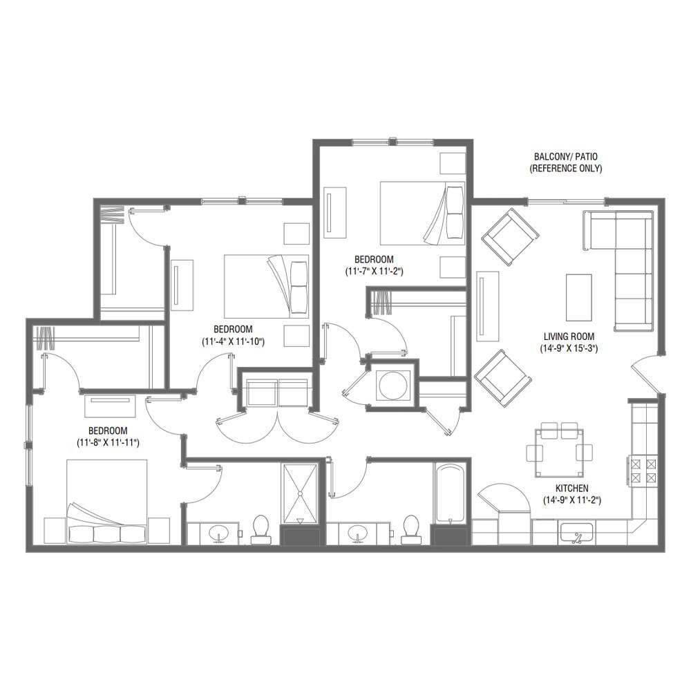 1 Dormitorio, 1 Baño, 800 pies²Disponible AhoraGalería del Modelo
