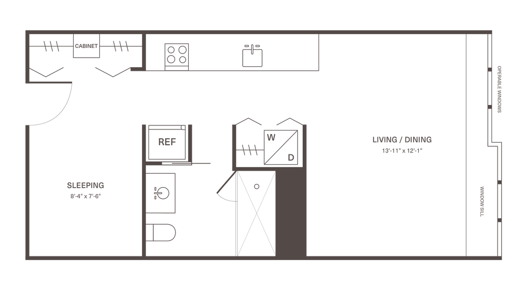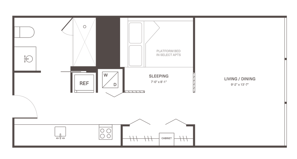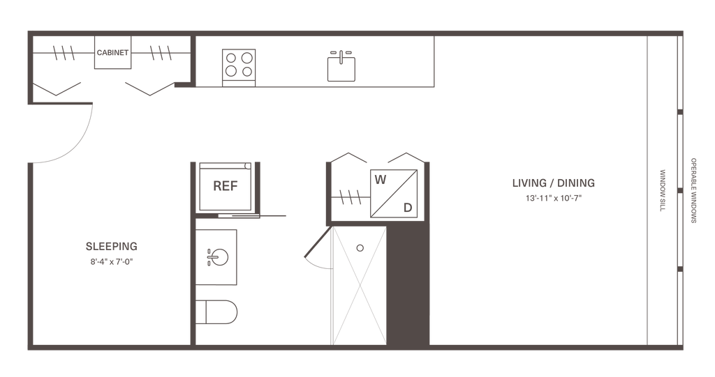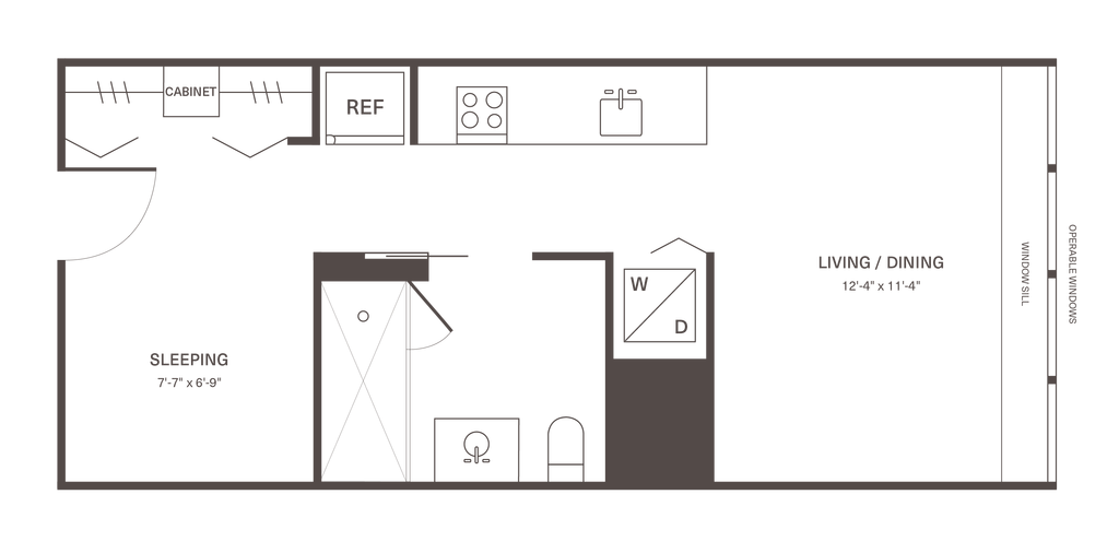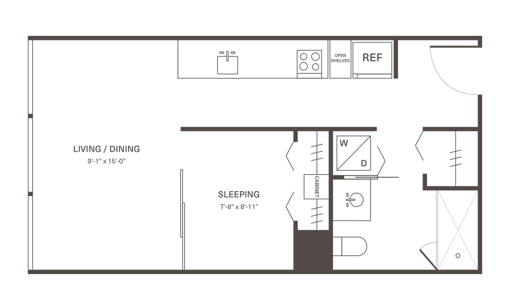 Estudio, 1 Baño, 480 pies²Disponible Oct 17El más grandeEsta opción tiene las unidades más grandes para este modeloGalería del Modelo