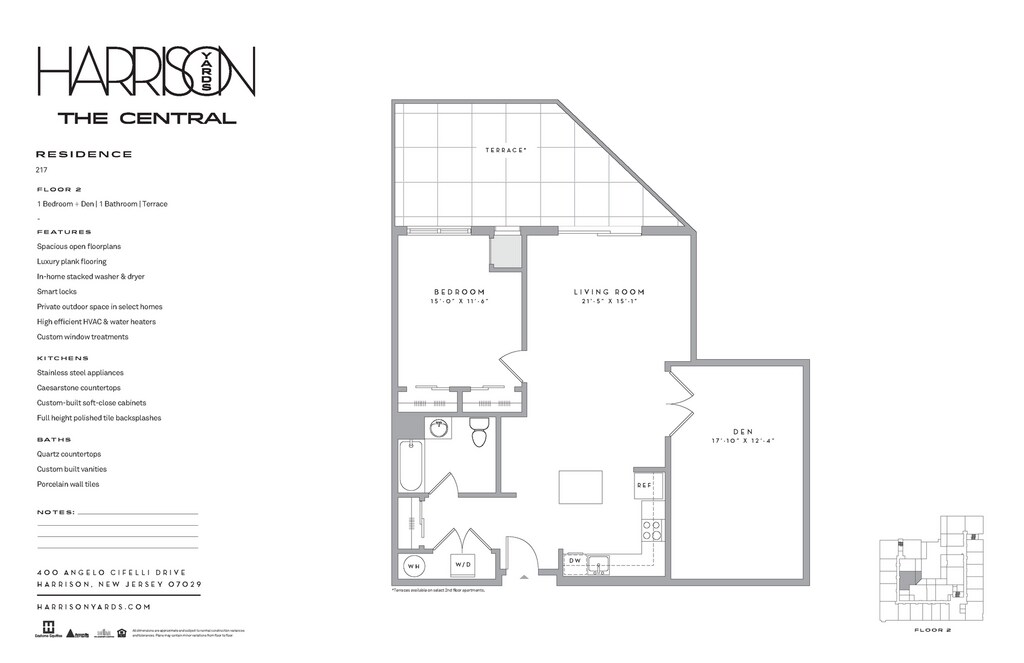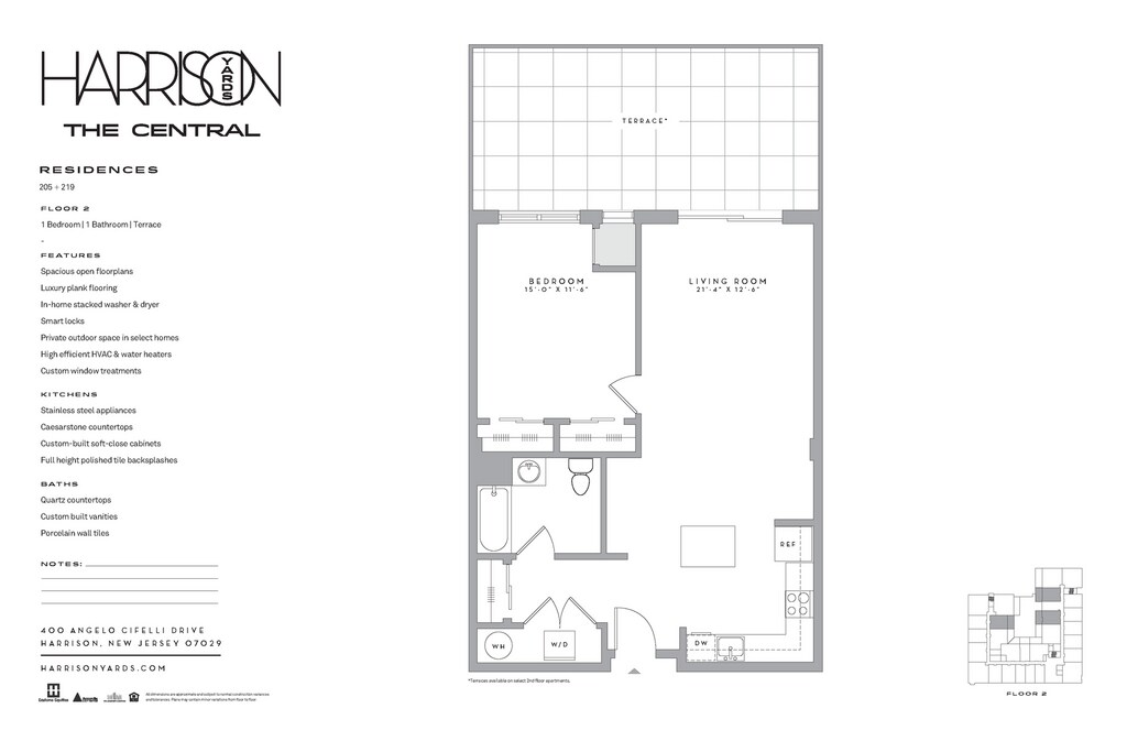 Harrison Yards se encuentra en el código postal 07029 de Harrison, NJ. Esta comunidad está gestionada profesionalmente por Greystar Real Estate Partners