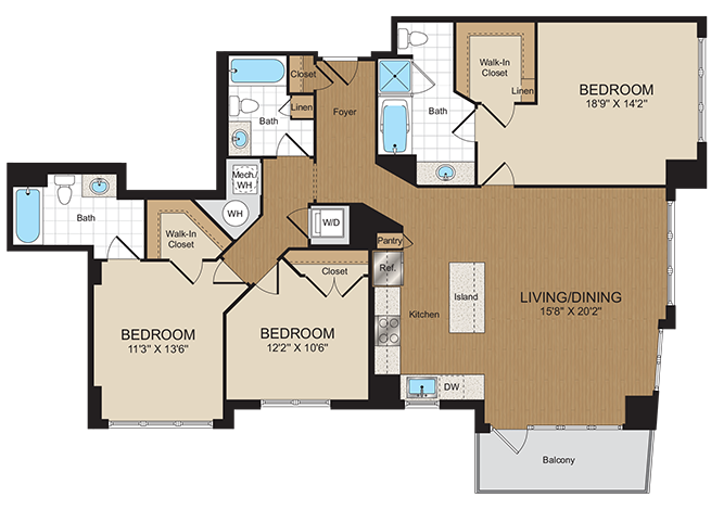 Harrison at Reston Town Center ofrece apartamentos de 1 a 3 Dormitorios desde $2,446 con 674–1,516 pies cuadrados. Aquí está el precio actual y la disponibilidad: