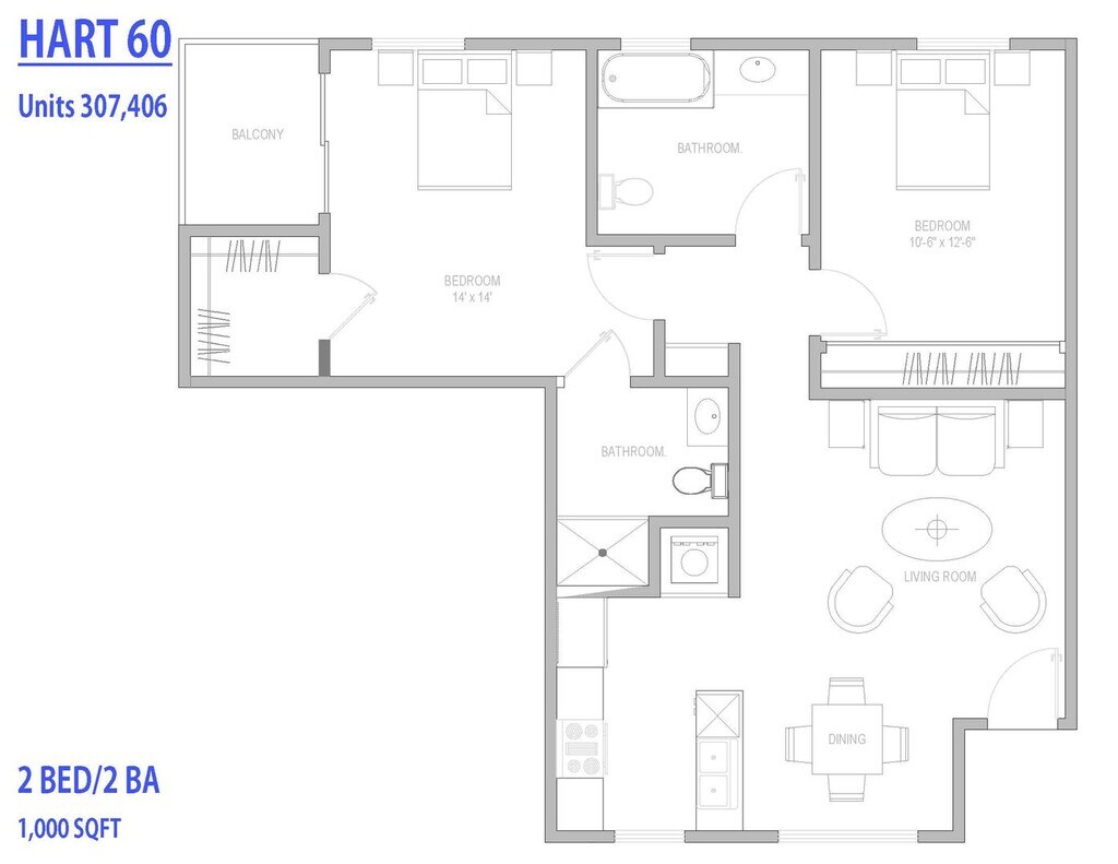 Unidad de apartamento: 307Modelo de apartamento: 2BR/2.0BA2 Dormitorios, 2 Baños, 1000 sq ftDisponible April 24, 2026![]()
