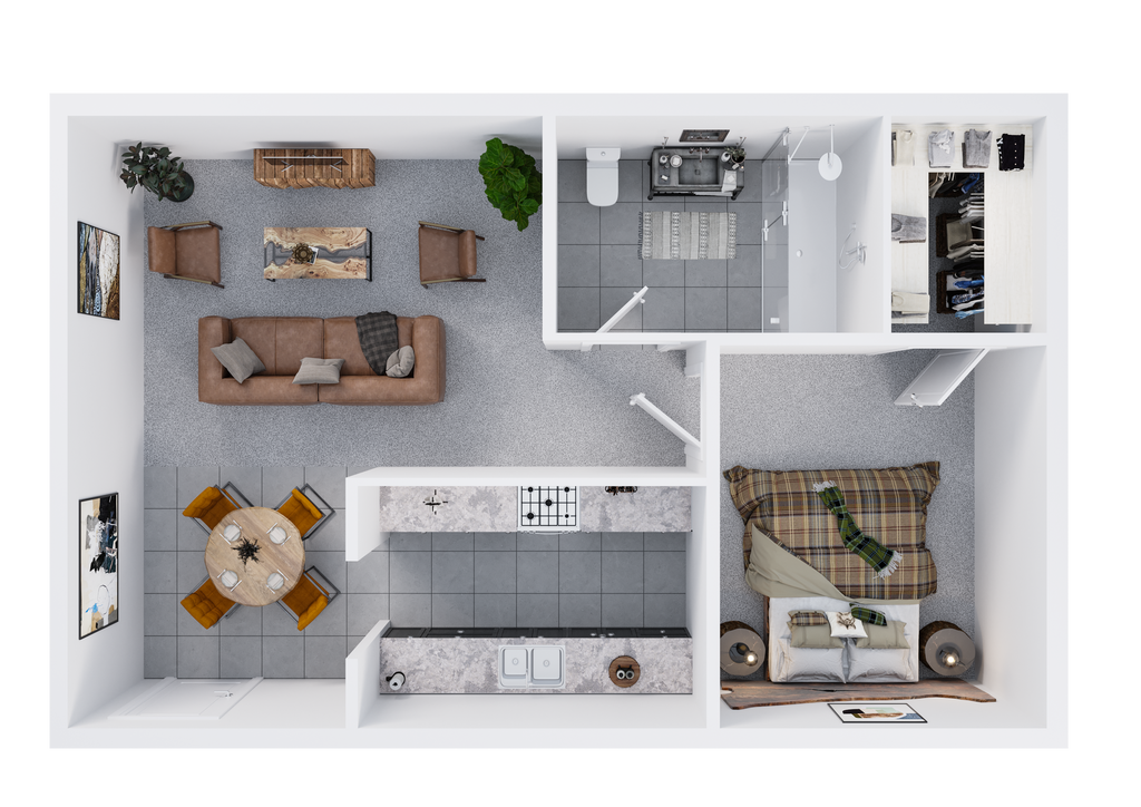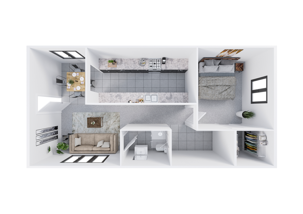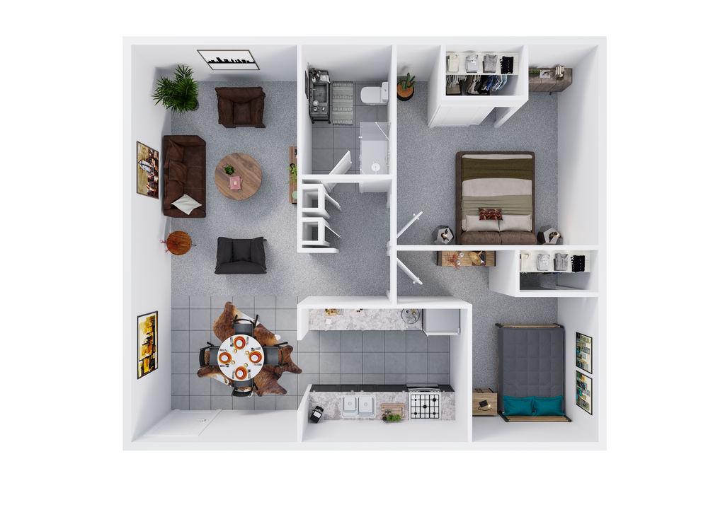 1 Dormitorio, 1 Baño, 540 pies²Disponible AhoraGalería del Modelo