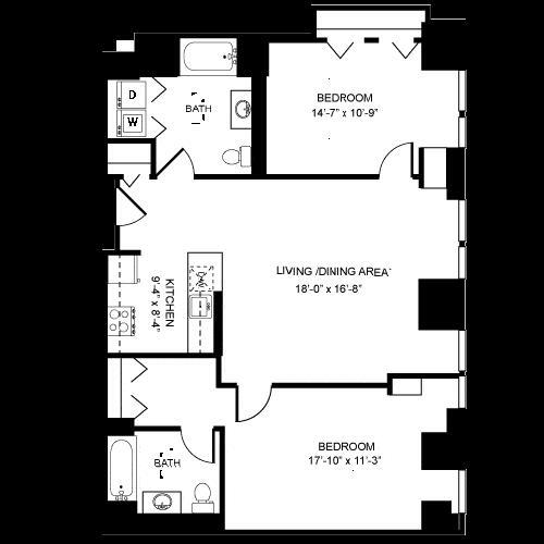 Modelo de apartamento: ReservoirDesde $2,2952 Dormitorios, 2 Baños, 1176 sq ftDisponible Ahora![]()