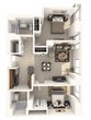Modelo de apartamento: SigourneyDesde $2,1201 Dormitorio, 1 Baño, 747 sq ftDisponible April 8, 2026![]()