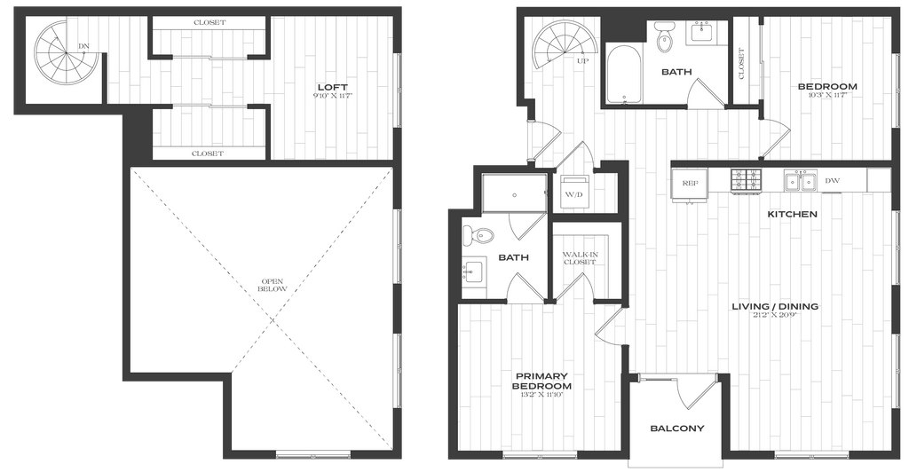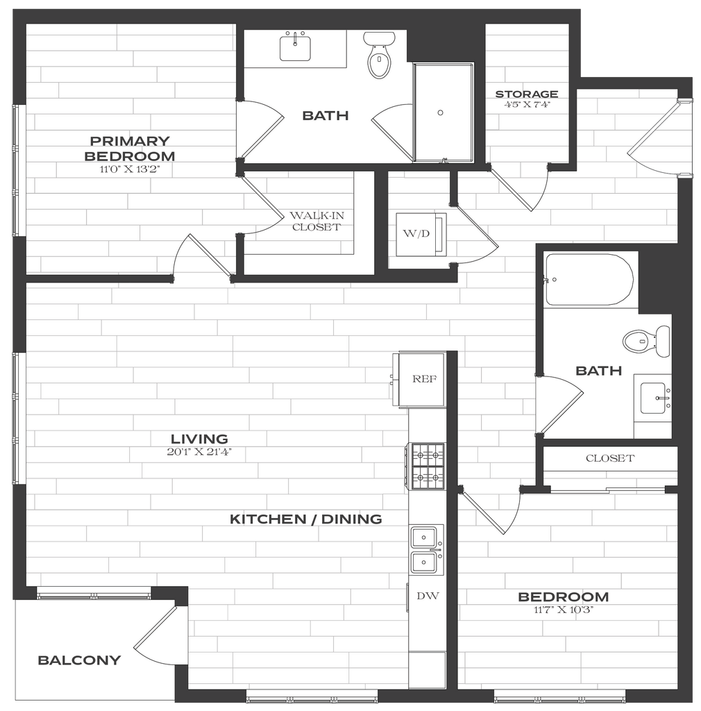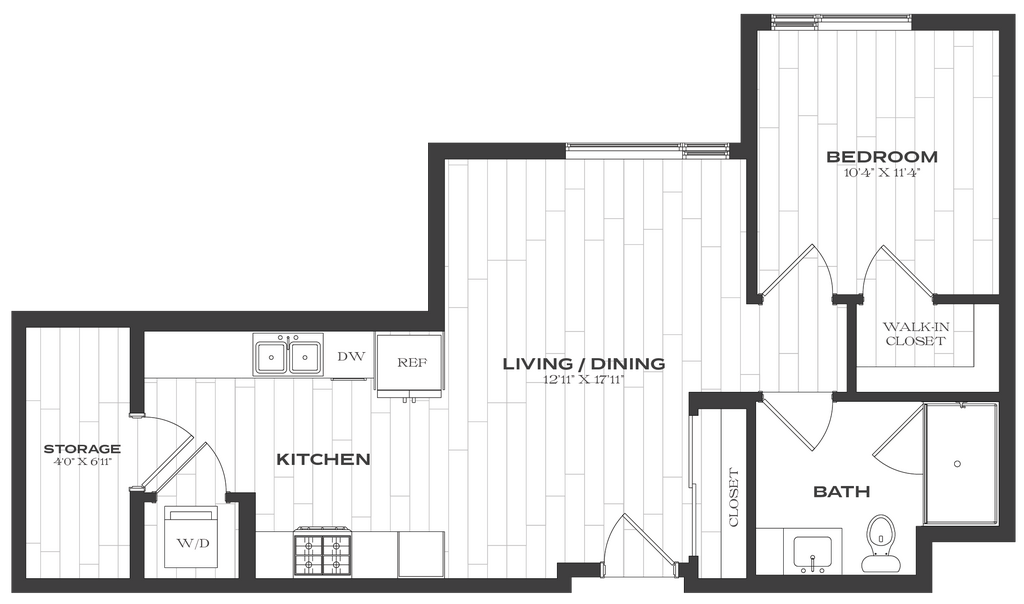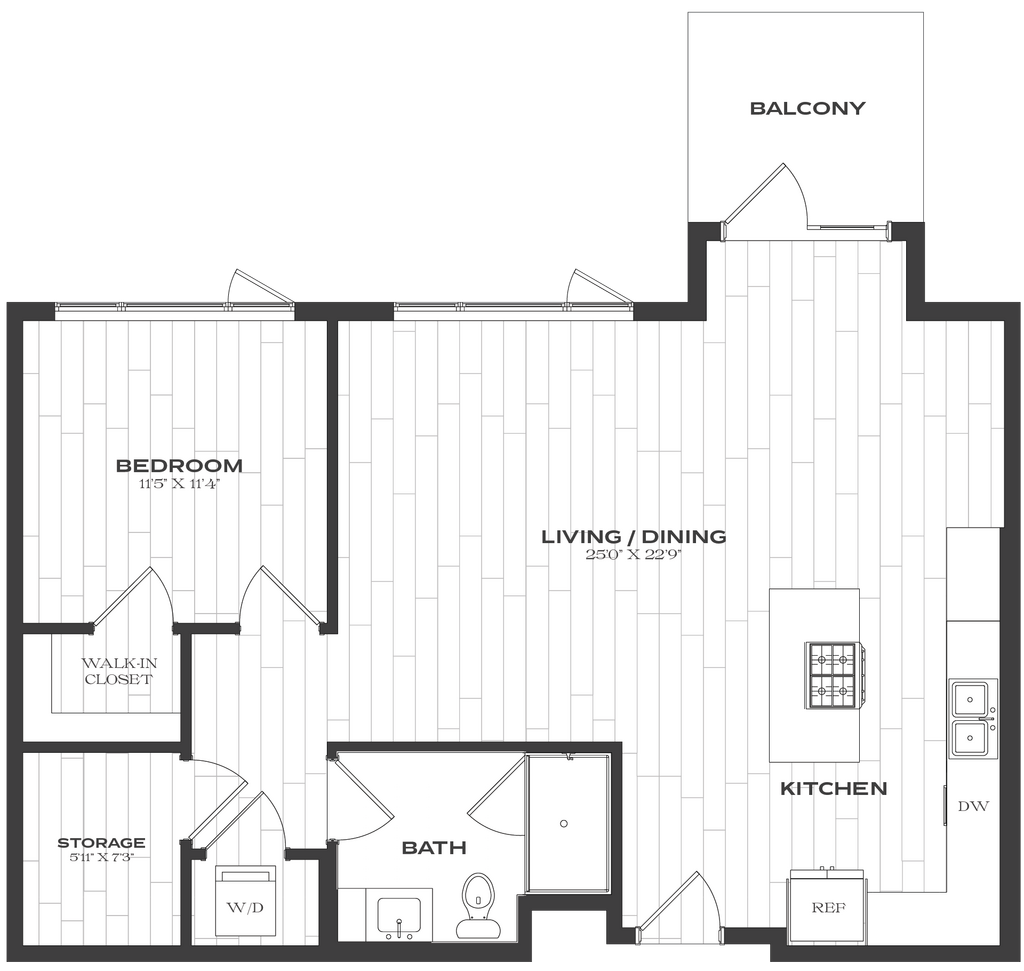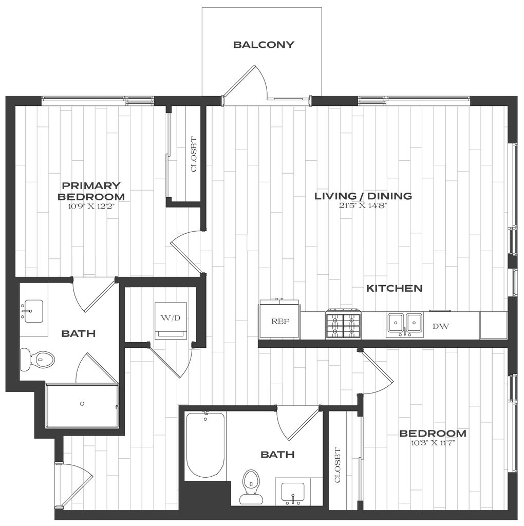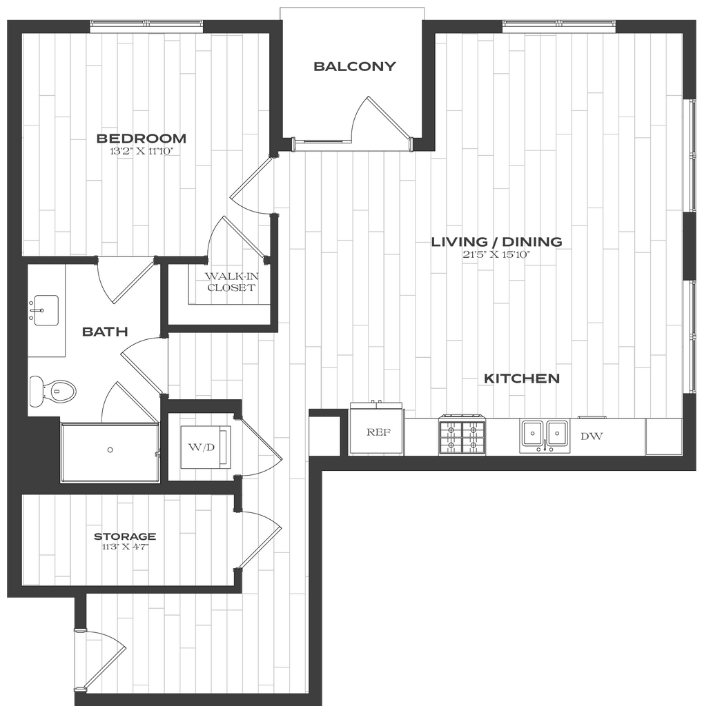 1 Dormitorio, 1 Baño, 843 pies²Disponible AhoraGalería del Modelo
